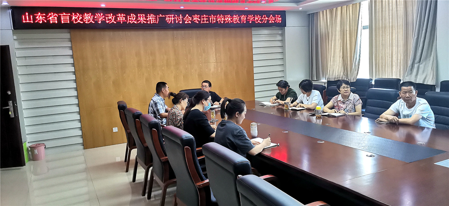 ?? 為推進特殊教育課程改革實踐,分享特殊教育教學研究成果,促進全省特殊教育學校教育教學工作交流,2022年6月8日,山東省教育學會特殊教育專業(yè)委員會召開省盲?;A(chǔ)教育教學改革成果推廣會,推廣淄博市特殊教育中心承擔的2019年山東省基礎(chǔ)教育教學改革重點項目《盲童積極心育“馨德-揚志-展能”校本課程整體設(shè)計與研究》成果。會議由淄博市特殊教育中心、煙臺市特殊教育學校承辦,以線上線下相結(jié)合的方式召開。