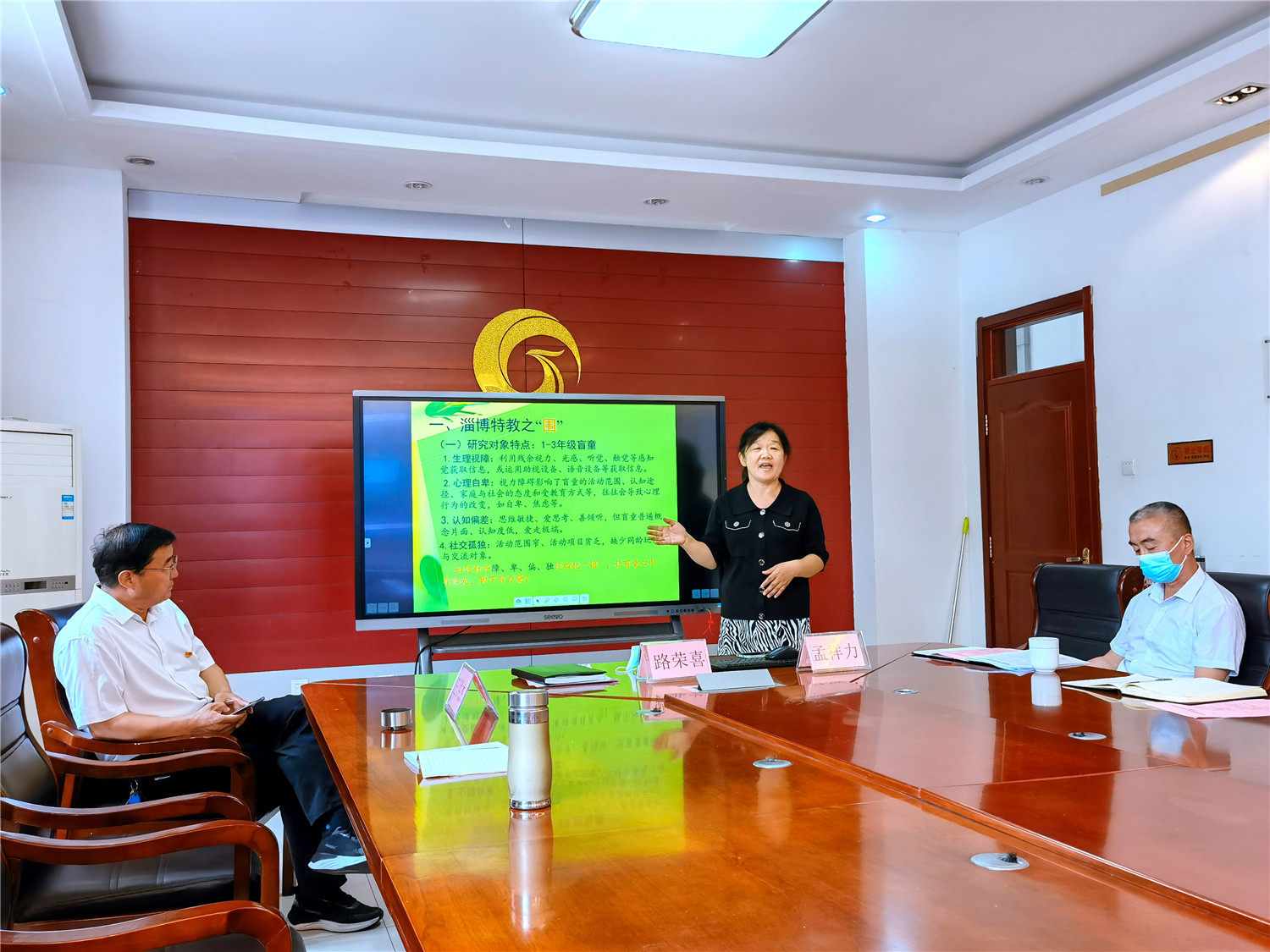 會議由淄博市特殊教育中心校長路榮喜主持,省內(nèi)特殊教育管理、教學、科研專家對淄博市特殊教育中心推廣的項目成果、展示課例進行了點評,全省各地盲校教師參加了線上研討,線下交流,并以美篇等形式分享學習體會。