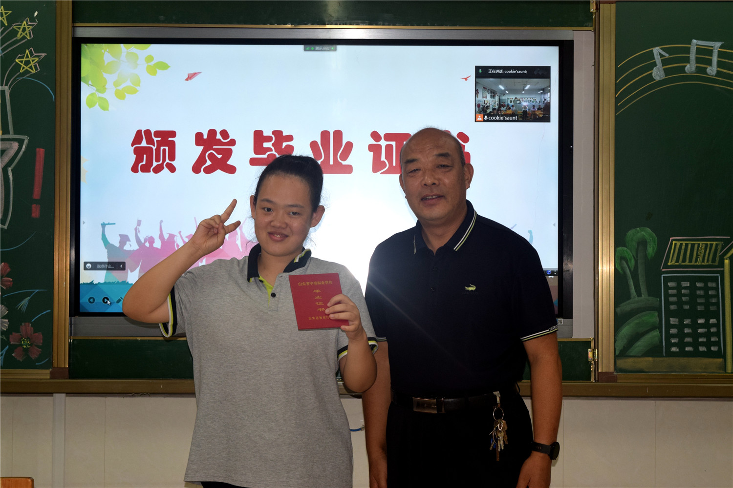 此次畢業(yè)典禮采取“線上+線下”相結(jié)合的方式,線下會場溫馨簡樸。高考結(jié)束和參加崗位實習的19名同學雖未能返校,但心情同在,祝福同在。大家隔屏相望,與在校的師生一起相聚“云端”,共同見證這值得紀念的時刻。典禮開始前,一首《光陰的故事》帶領(lǐng)大家一起回顧了畢業(yè)班師生三年的學校生活和成長之路。典禮伊始,由職業(yè)教育部分管領(lǐng)導任昌乾宣讀2022屆31名畢業(yè)生名單。接著,學校領(lǐng)導、職教部負責人、畢業(yè)班班主任等向每位學生一對一頒發(fā)畢業(yè)證并合影留念。