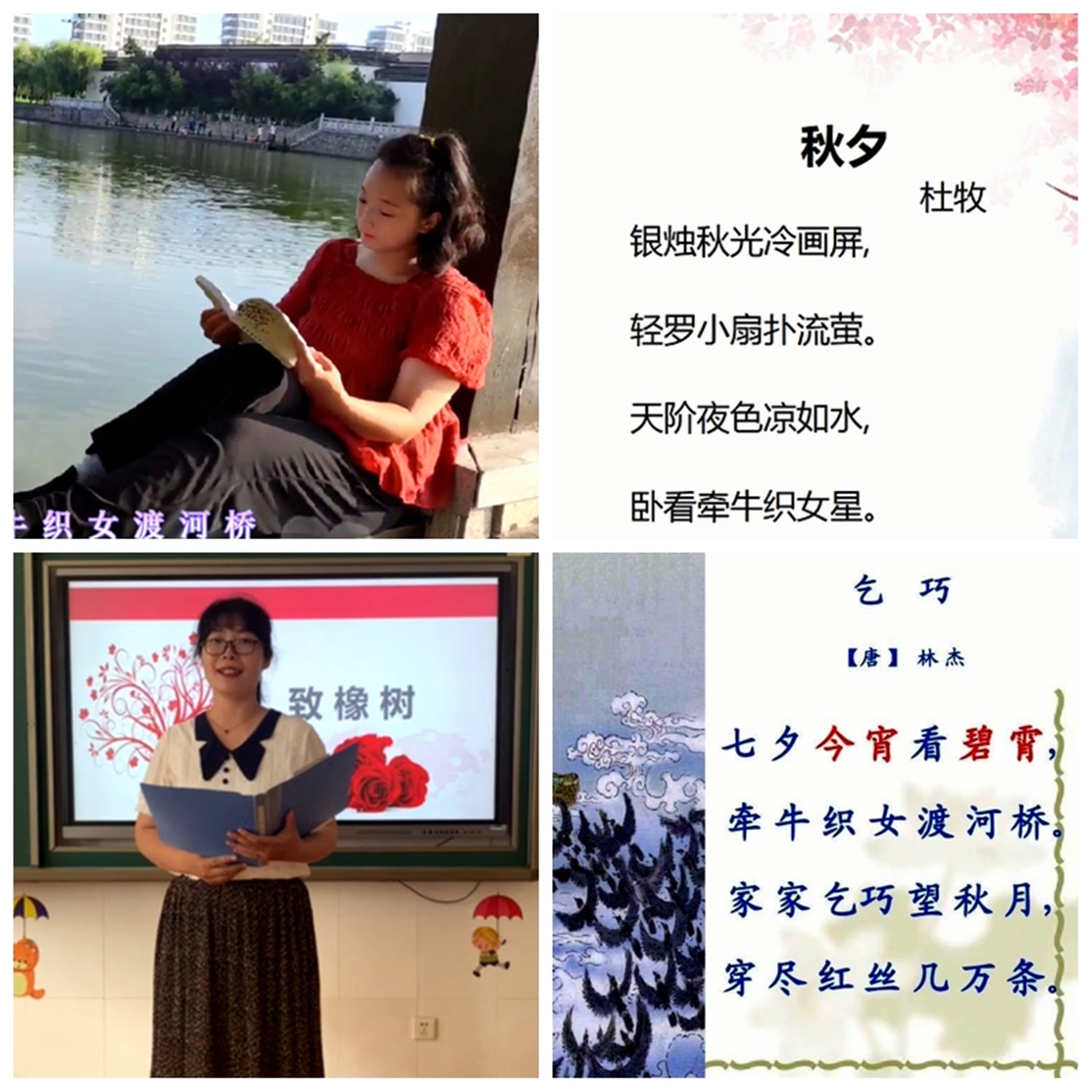 一是青年教師線上誦讀經(jīng)典。“銀燭秋光冷畫屏,輕羅小扇撲流螢。天階夜色涼如水,臥看牽??椗?。”“七夕今宵看碧霄,牽??椗珊訕?。家家乞巧望秋月,穿盡紅絲幾萬條。”通過吟誦愛情詩篇,傳頌美麗愛情故事,感受文化的魅力,把積極的人生追求、高尚的情感境界、健康的生活情趣傳遞下去。