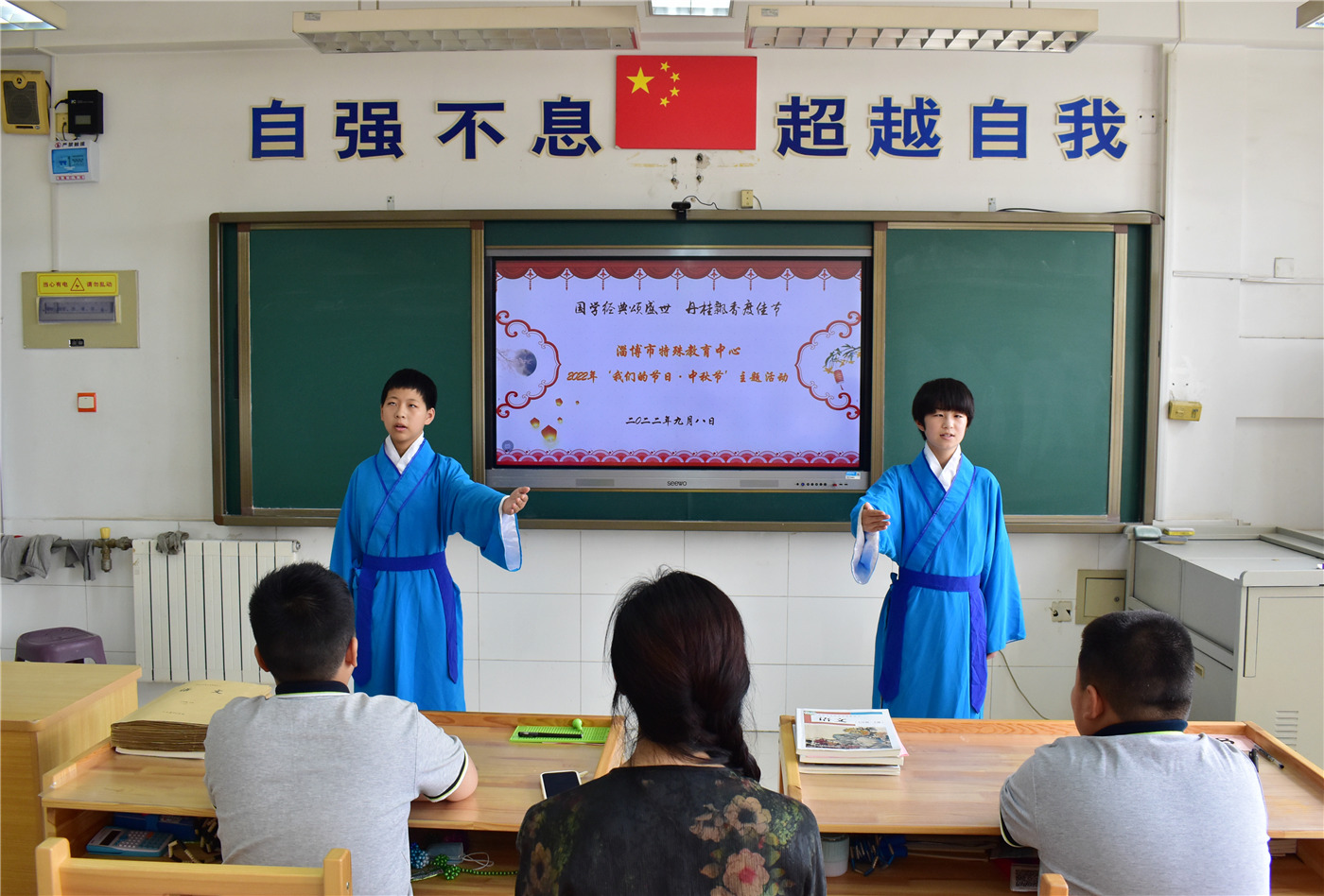 學(xué)校視障學(xué)生開展了以“愛黨愛國 團(tuán)圓幸?!睘橹黝}的經(jīng)典誦讀活動(dòng)。以“雙節(jié)”為契機(jī),師生精心選取了部分紅色經(jīng)典詩詞、中秋民俗詩歌進(jìn)行誦讀傳唱,并錄制成視頻在校內(nèi)廣泛傳播。在校園內(nèi)營造出濃厚氛圍,師生共同感受傳統(tǒng)經(jīng)典的魅力,領(lǐng)略中華傳統(tǒng)文化的精髓內(nèi)涵。
