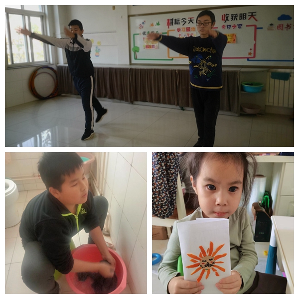 藝體多樣展風(fēng)采,勞動(dòng)比拼見特長(zhǎng)。藝體教師結(jié)合各類學(xué)生特點(diǎn),通過不同形式組織開展藝體課,用顏色、音樂和運(yùn)動(dòng)向?qū)W生們傳遞溫暖、自信的力量。生活適應(yīng)和勞動(dòng)技能教師從不同學(xué)段學(xué)生的生活實(shí)際出發(fā),組織學(xué)生開展勞動(dòng)技能比拼,這不僅培養(yǎng)了學(xué)生們的自理能力,為父母減輕了家務(wù)負(fù)擔(dān),也為居家學(xué)習(xí)生活創(chuàng)造了溫馨舒適的環(huán)境。