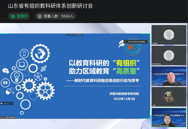 ? 為深入學習貫徹黨的二十大精神和習近平總書記關于教育的重要論述,落實教育部關于加強有組織科研的部署,2022年12月3日,山東省教育科學研究院以線上方式召開“山東省有組織教科研體系創(chuàng)新研討會”。淄博市特殊教育中心積極響應,組織校級領導、中層干部、教研組長及科研骨干參加會議,部分對科研感興趣的教師也紛紛加入,大家齊聚云端,認真觀摩學習,啟發(fā)頗大,收獲頗豐。
