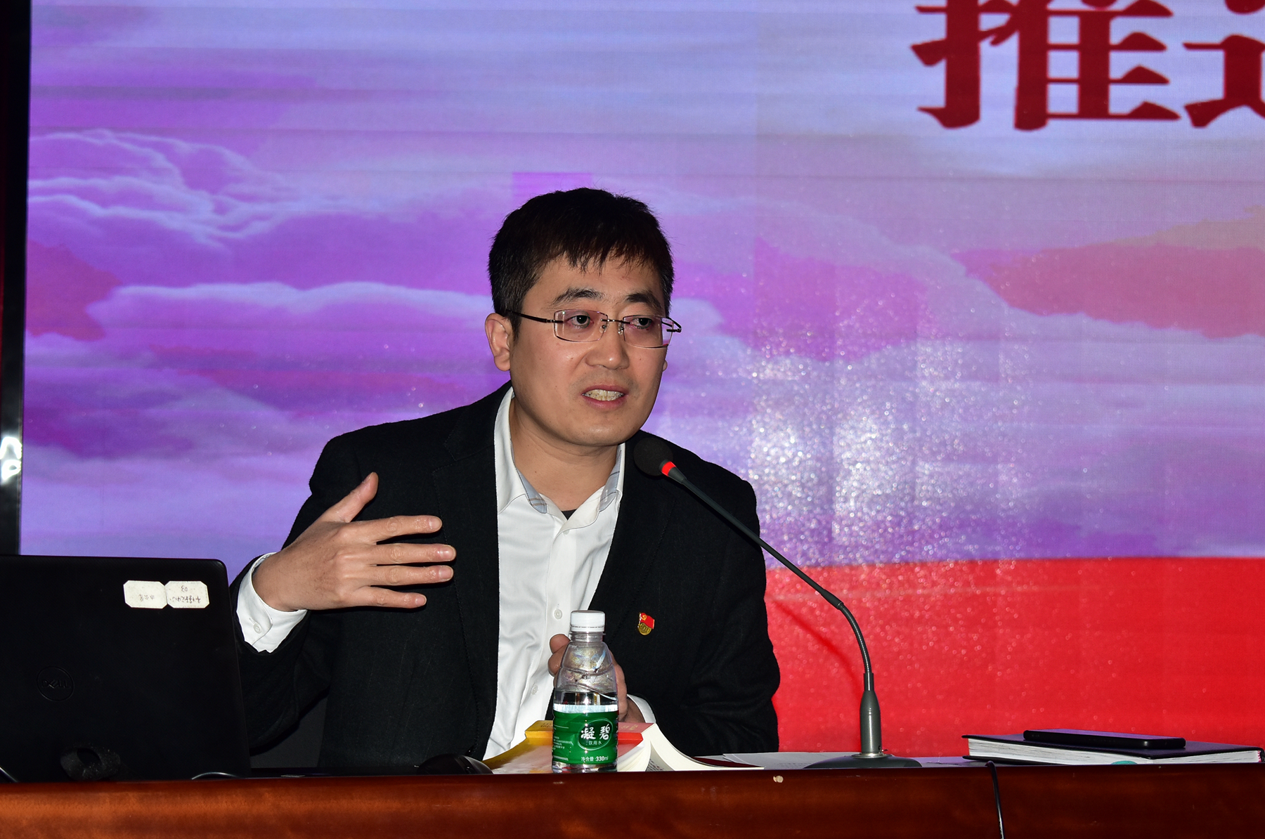 王芝東以“建設(shè)高素質(zhì)干部隊伍 推進(jìn)學(xué)校高質(zhì)量發(fā)展”為題,從黨中央、省市、學(xué)校三個層面講解干部隊伍建設(shè)的要求、經(jīng)驗做法和基本思路。一是原文領(lǐng)學(xué)《黨的二十大報告學(xué)習(xí)輔導(dǎo)百問》中的《建設(shè)堪當(dāng)民族復(fù)興重任的高素質(zhì)干部隊伍》,帶領(lǐng)管理干部讀原文、悟原理。二是從突出用人導(dǎo)向、突出政治標(biāo)準(zhǔn)、突出實績實效、突出功能優(yōu)化四個方面介紹山東省干部隊伍建設(shè)經(jīng)驗,分享了青島市市北區(qū)“全鏈條”培育模式,為管理干部明方向、理思路。三是闡述學(xué)校干部隊伍建設(shè)的基本思路和對學(xué)校未來發(fā)展的思考,他指出要在學(xué)校頂層設(shè)計中加強干部隊伍設(shè)計,在多維賦能中推進(jìn)干部素質(zhì)能力提升,在依法治校中提升干部法治意識和機制思維,為管理干部傳經(jīng)送寶、解疑答惑。