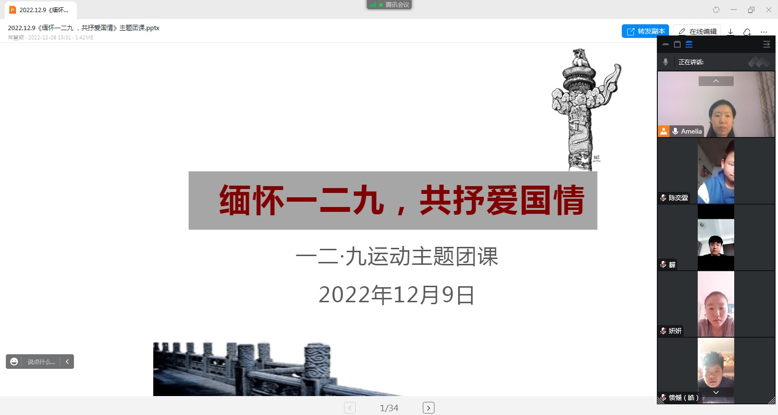 儀式結(jié)束后,各團支部團員線上學習了《緬懷一二·九,共抒愛國情》主題團課,緬懷和紀念那些為祖國的民主與獨立而不斷奮進的愛國青年,激勵自己永遠保持著一份昂揚奮進的心。