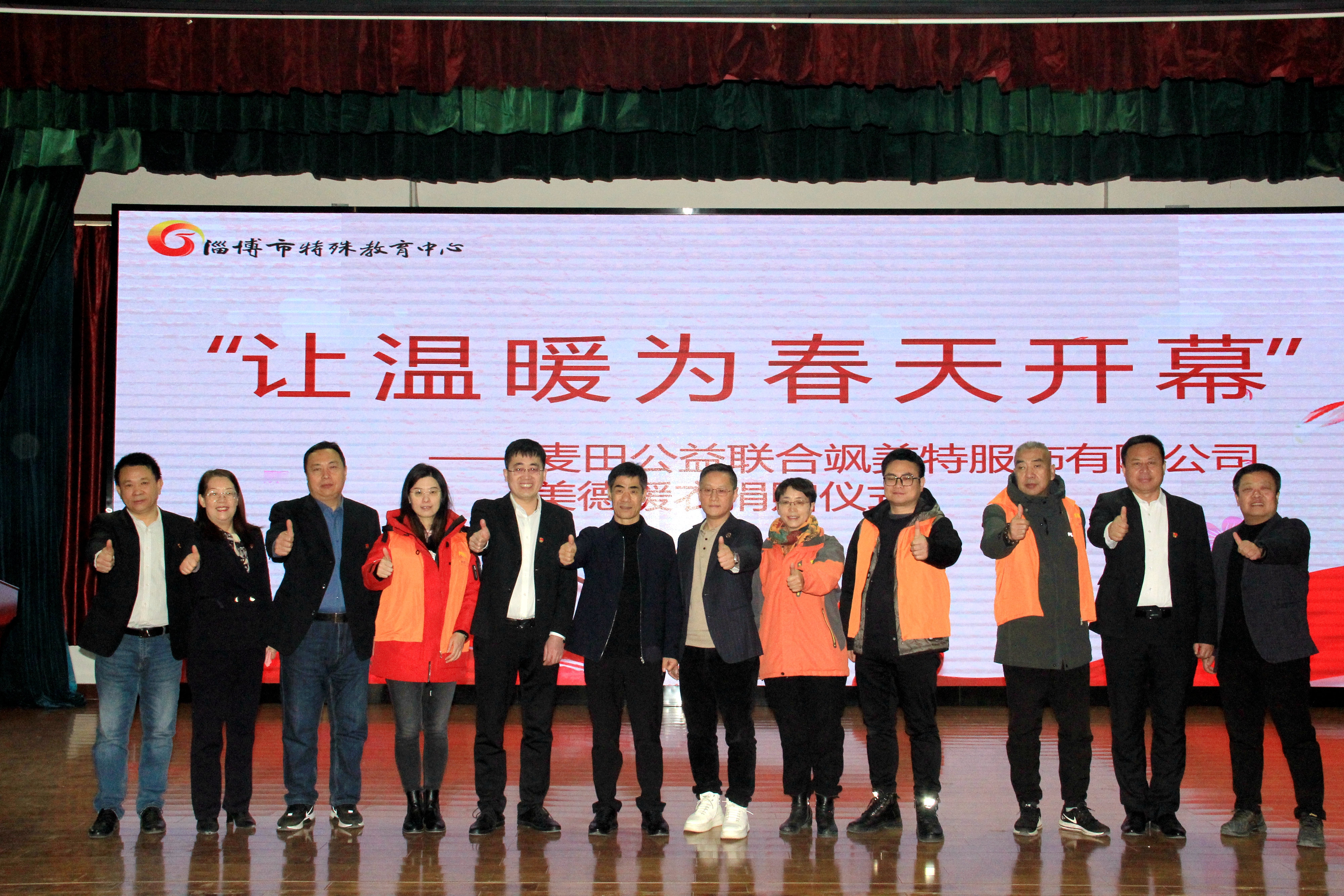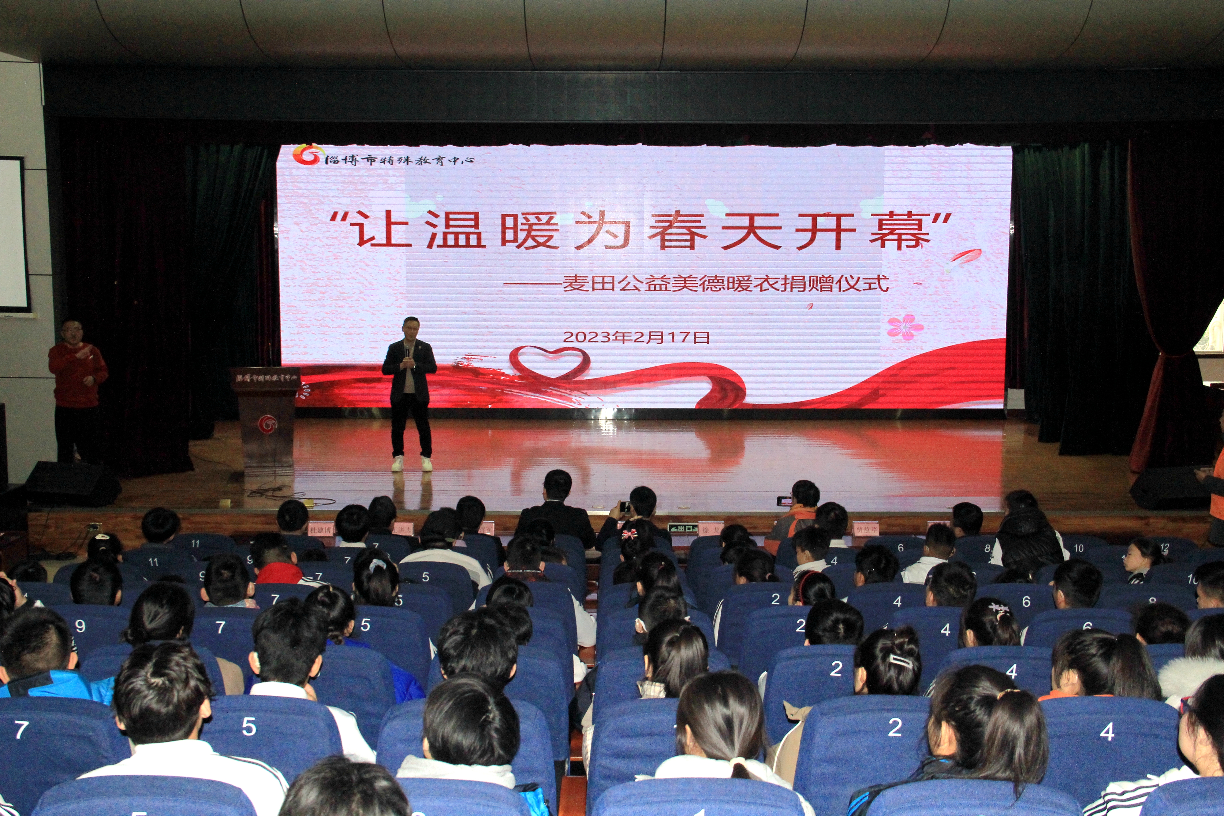 2月17日,淄博麥田公益助學(xué)中心攜手波司登集團(tuán)颯美特服飾走進(jìn)淄博市特教中心,舉行“讓溫暖為春天開幕”公益捐贈(zèng)儀式,一起為學(xué)生們捐贈(zèng)總價(jià)值76800元的384套運(yùn)動(dòng)服裝。市教育局總督學(xué)趙志遠(yuǎn)、麥田公益助學(xué)中心負(fù)責(zé)人高變英、颯美特服飾總經(jīng)理徐龍等愛心人士參加儀式。