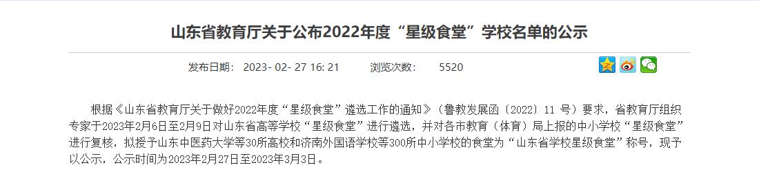 ? 近日,山東省教育廳公布了2022年度“星級(jí)食堂”學(xué)校名單,淄博市特殊教育中心食堂憑借規(guī)范的管理體系、過硬的設(shè)施條件和優(yōu)越的就餐環(huán)境獲此稱號(hào)。