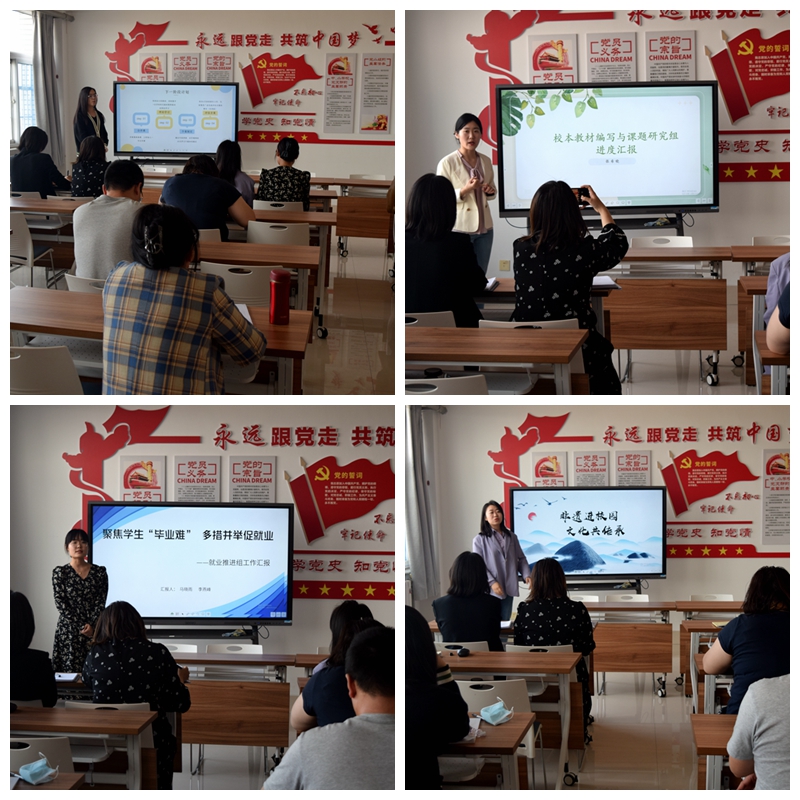 就業(yè)安置與指導(dǎo)組以“聚焦學(xué)生就業(yè)難,多措并舉促發(fā)展”為重點(diǎn),就近期開(kāi)展的校企合作對(duì)接、社區(qū)就業(yè)調(diào)研、居家就業(yè)追蹤進(jìn)行了匯報(bào)。以國(guó)家政策為依據(jù),努力拓寬企業(yè)就業(yè)、社區(qū)就業(yè)、居家就業(yè)等多種就業(yè)形式,以期給學(xué)生提供更多的就業(yè)支持與幫扶。