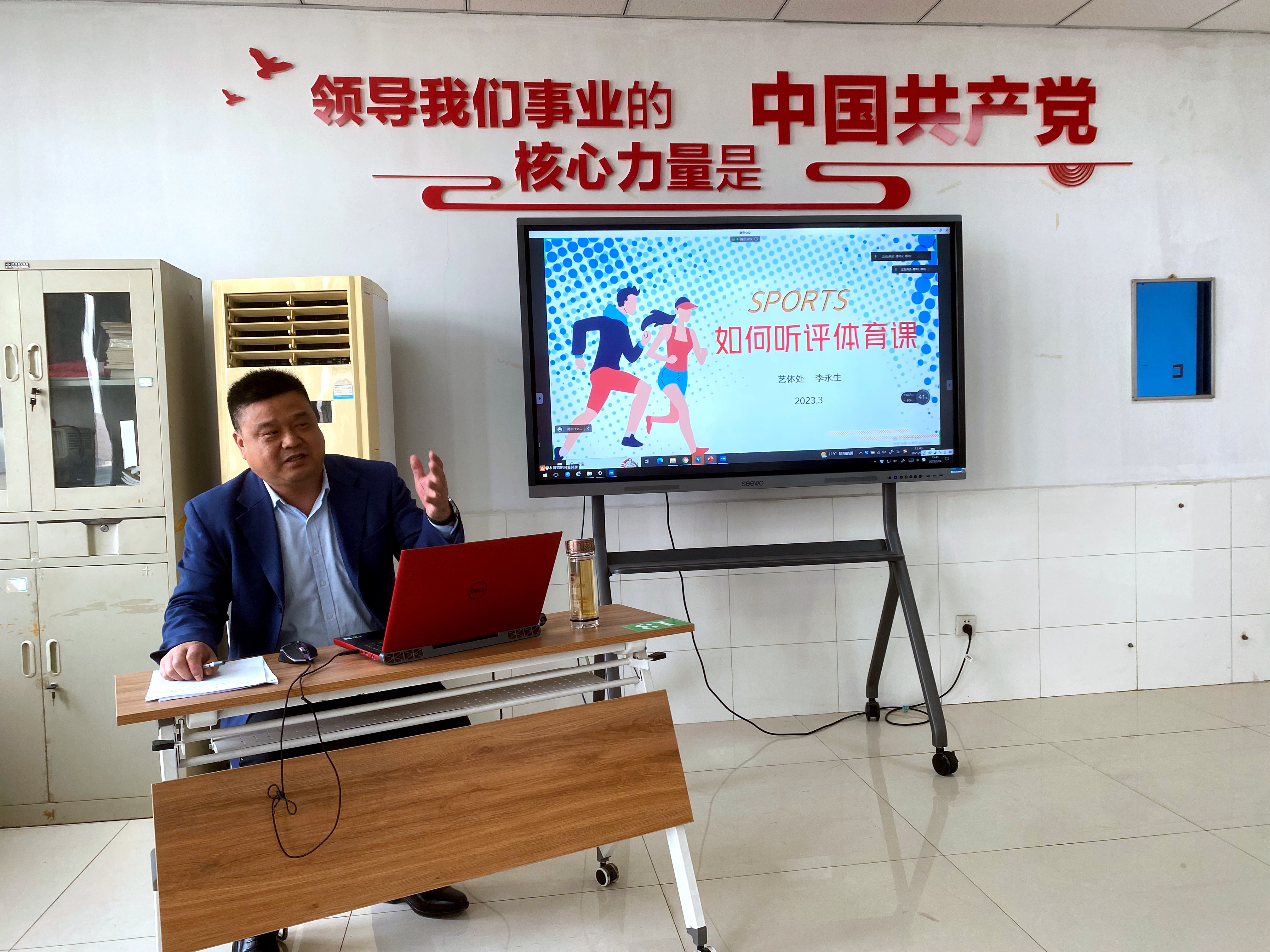 李永生老師針對近期將舉行的公開課展示活動主講了《如何聽評體育課》,從聽課前準備工作、聽課中關(guān)注內(nèi)容、聽課后如何點評等方面,詳細闡述了聽評一堂體育課應(yīng)注意的要點,并結(jié)合各類特需學(xué)生特點,對上好一堂體育課要具備的基本要素和亮點體現(xiàn)進行了講解。