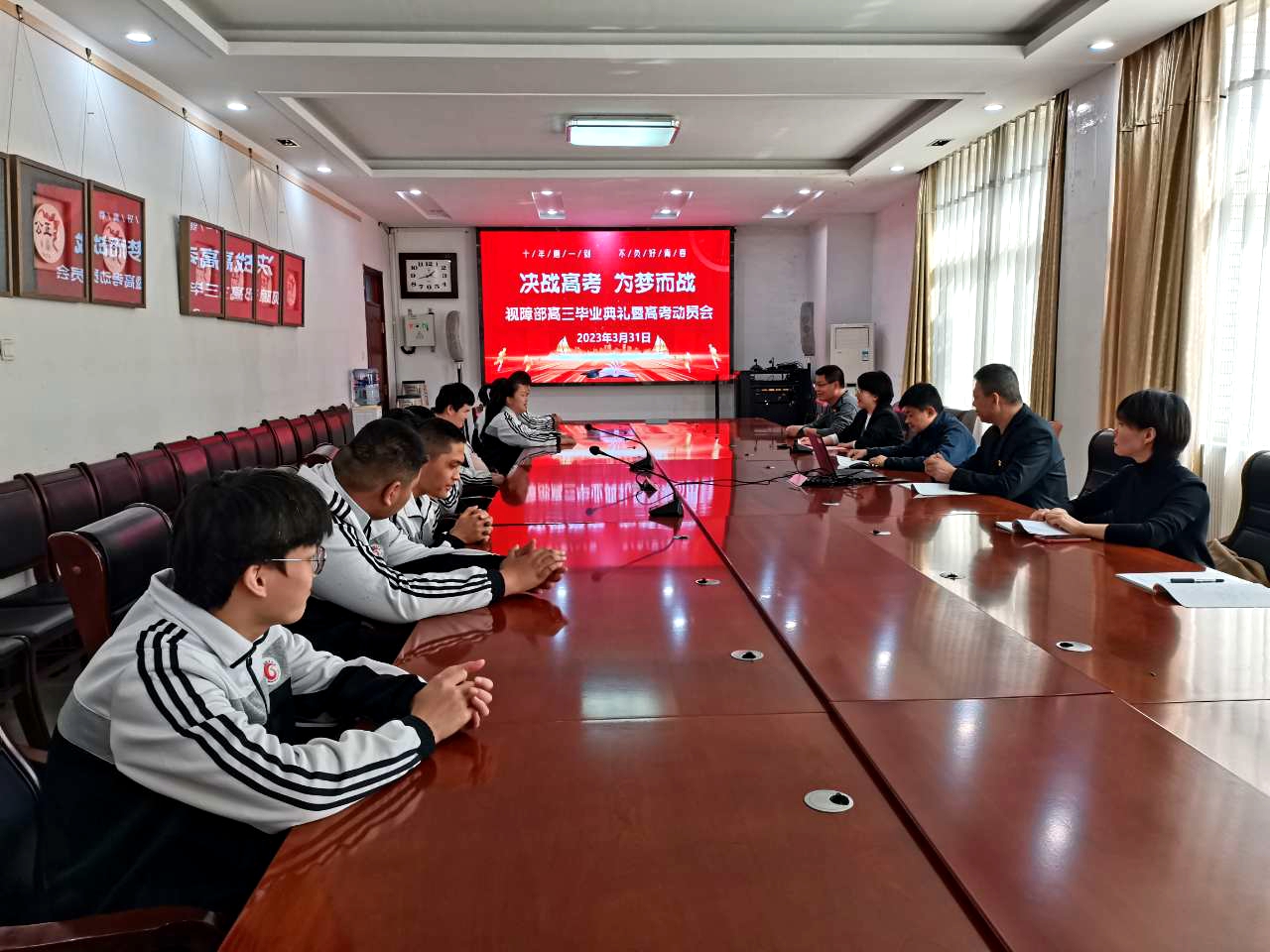 亮劍出鞘,誰與爭鋒。征戰(zhàn)高考的號角已經(jīng)吹響,全體高三師生必將以此次會議為契機,爭分奪秒,勠力同心,沖刺高考,圓夢高考!