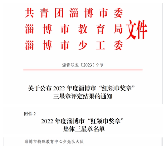 近日,共青團淄博市委、淄博市教育局、淄博市少工委聯(lián)合印發(fā)《關(guān)于公布2022年度淄博市“紅領(lǐng)巾獎?wù)?/font>”三星章評定結(jié)果的通知》,對2022年度“紅領(lǐng)巾獎?wù)?/font>”三星章的評定結(jié)果進行通報。淄博市特教中心少先隊大隊榜上有名,榮獲淄博市“紅領(lǐng)巾獎?wù)?/font>”集體三星章。