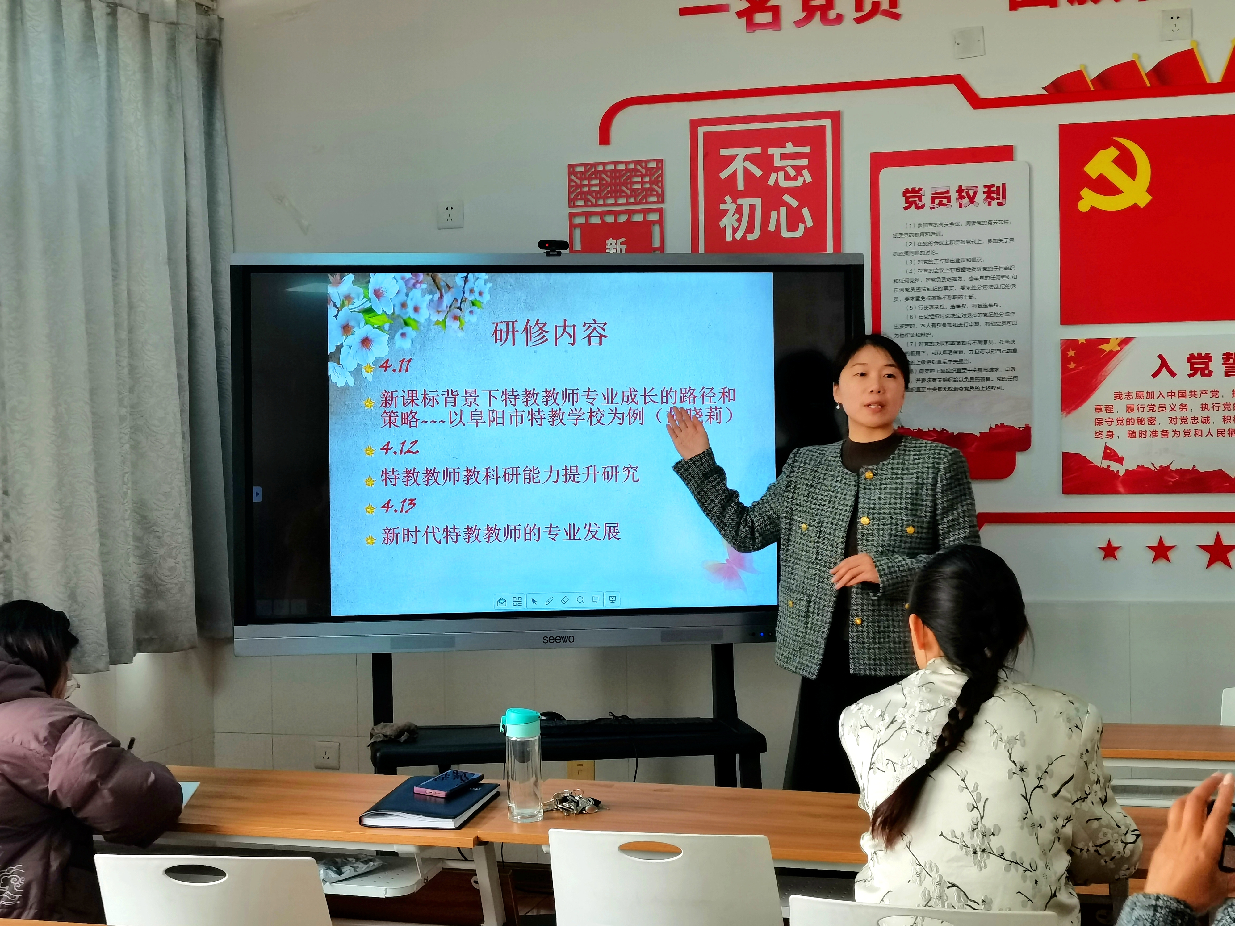 4月11日,老師們觀看了阜陽市特殊教育學(xué)校胡曉莉老師以《新課程背景下特教教師專業(yè)成長的路徑和策略》為主題的專題報(bào)告。胡老師理論聯(lián)系實(shí)際,從涵養(yǎng)師德、賦能專業(yè)、聚焦成長三方面進(jìn)行了深入淺出的講解,為老師們今后的專業(yè)發(fā)展指明了方向,提供了方法。