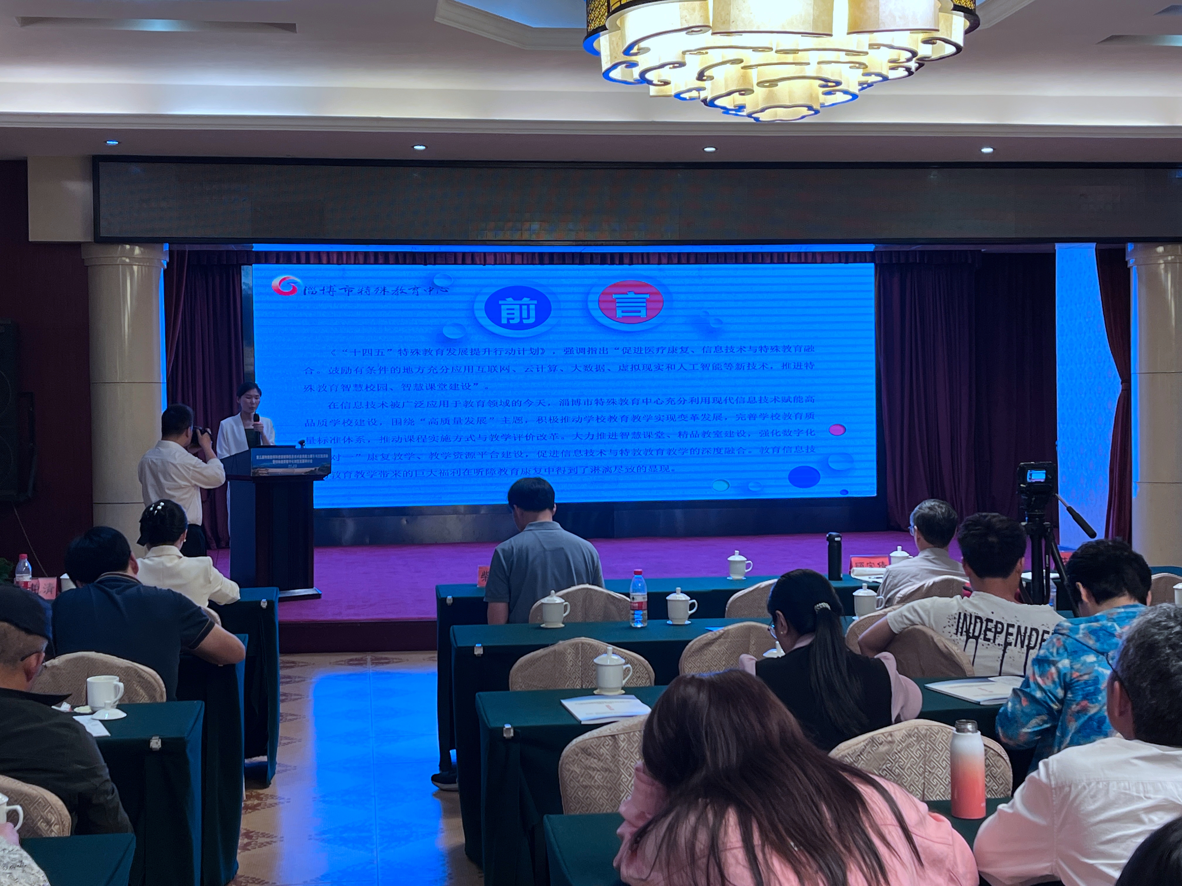 為全面落實(shí)黨的二十大提出的“強(qiáng)化特殊教育普惠發(fā)展”要求,以數(shù)字化賦能特殊教育高質(zhì)量發(fā)展,2023年4月19日—20日,“第五屆特教教師和資源教師信息技術(shù)應(yīng)用能力交流與展示活動暨特殊教育數(shù)字化轉(zhuǎn)型發(fā)展研討會”在湖北省宜昌市秭歸縣舉行。此次會議來自全國28個城市的高校、特校、融合學(xué)校、康復(fù)機(jī)構(gòu)等近900人參加線下會議,2萬余人參加線上會議。我校六名老師參加了活動,滕方媛老師代表學(xué)校在聽障組做專題匯報(bào)。