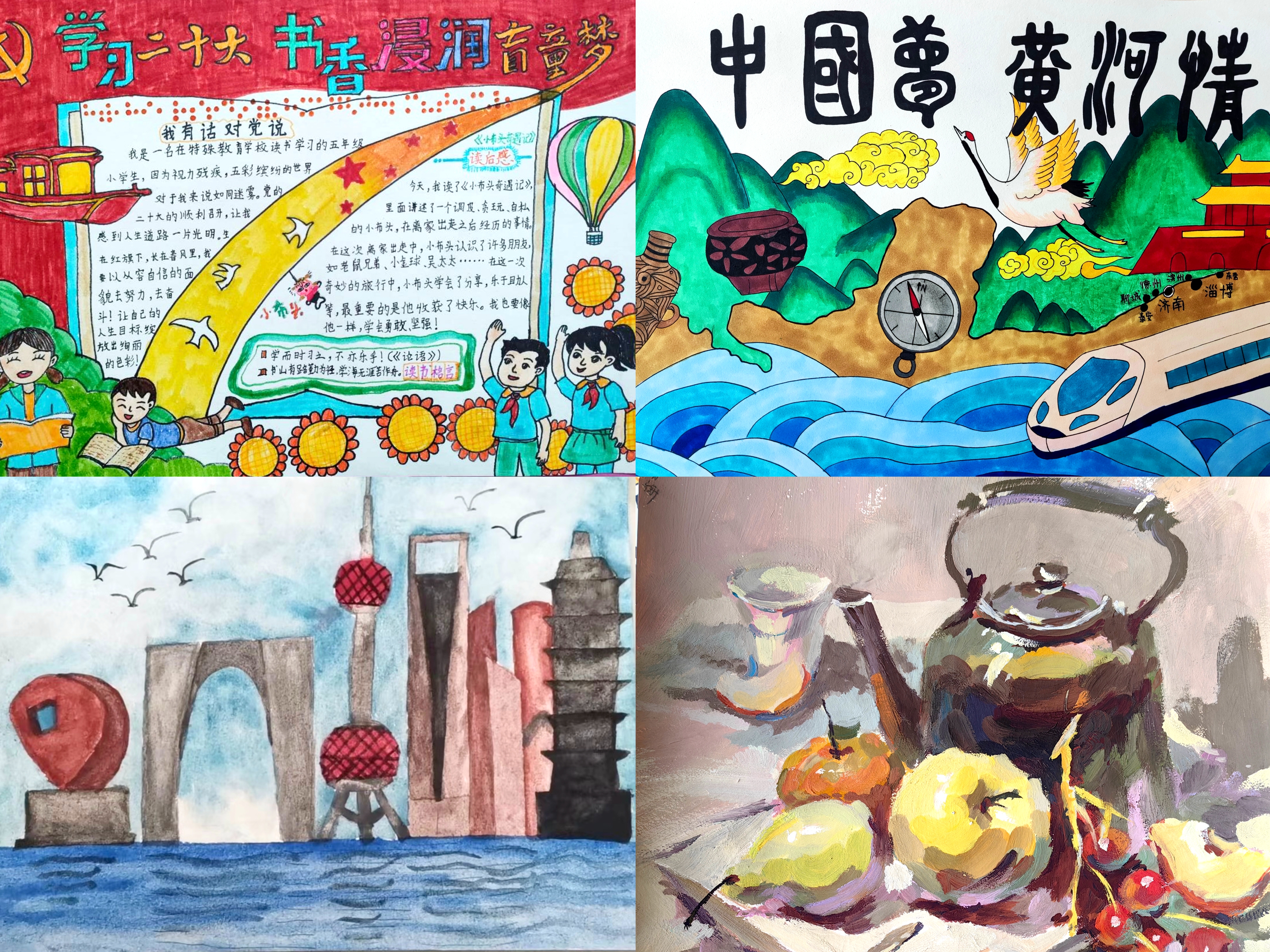 在團課、隊課學(xué)習的基礎(chǔ)上,各個學(xué)部的學(xué)生們用繪畫及手抄報作品描繪了祖國大好河山,展現(xiàn)了黨的光輝歷史,充分展示了豐富多彩的學(xué)習成果。