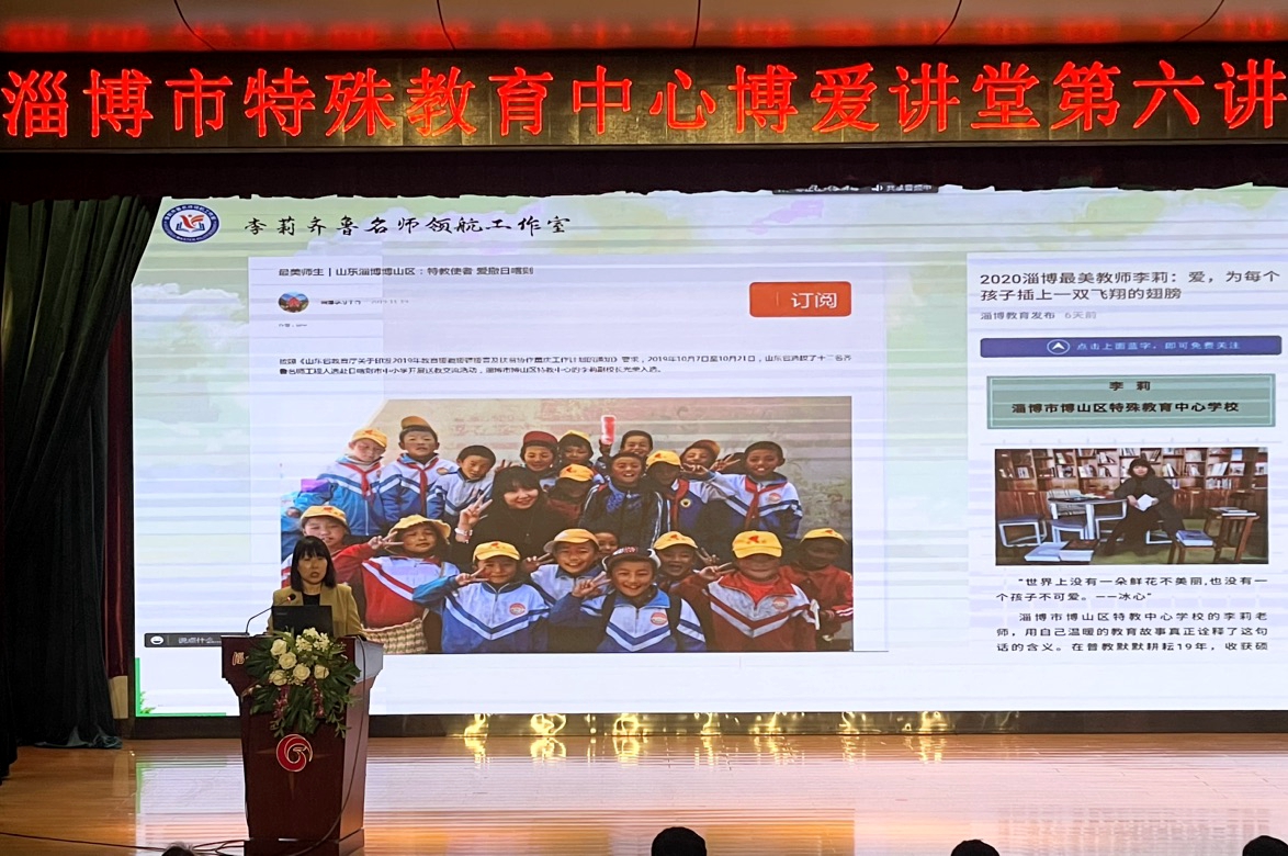 本期博愛講堂主講嘉賓是博山區(qū)特殊教育中心學(xué)校李莉校長(zhǎng),李校長(zhǎng)以“專業(yè)加愛 幸福成長(zhǎng)”為題,以圖說的形式將自己的專業(yè)成長(zhǎng)故事娓娓道來。她從“一雙布鞋”的故事開始,富有感情的講述了自己的四段專業(yè)成長(zhǎng)之路。從衣帶漸寬終不悔的向下扎根階段到為伊消得人憔悴的向上拔節(jié)階段,19年的普校教育經(jīng)歷讓我們認(rèn)識(shí)到了名師堅(jiān)韌不拔,精益求精的教育品質(zhì)。其中提到的以賽磨志,練一身過硬的基本功和以心換心,攜手家長(zhǎng)共同成長(zhǎng)兩個(gè)事例更是為年輕教師夯實(shí)教育教學(xué)基本功提供了范例。在化作春泥更護(hù)花的普特融合階段和百花齊放春滿園的輻射引領(lǐng)階段中,李校長(zhǎng)講述了從普校教育轉(zhuǎn)型到特殊教育的發(fā)展經(jīng)歷以及未來的奮斗方向。作為校長(zhǎng),以生為本,課題帶動(dòng),為學(xué)生提供更加適合的教育。作為齊魯名師領(lǐng)航工作室主持人,以研促教,示范引領(lǐng),為帶動(dòng)特教事業(yè)發(fā)展貢獻(xiàn)力量。