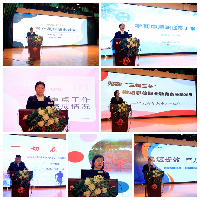 會(huì)上,14名教學(xué)部和處室負(fù)責(zé)人圍繞新學(xué)期以來“重點(diǎn)工作完成情況”“亮點(diǎn)工作”“存在問題”“下步打算”等匯報(bào)交流。干部們立足崗位職責(zé),從教育教學(xué)科研工作、教師隊(duì)伍建設(shè)、課程與課堂建設(shè)、組織人事工作、安全財(cái)務(wù)與后勤保障、文明與文化建設(shè)等方面系統(tǒng)梳理,總結(jié)亮點(diǎn),梳理問題,全面匯報(bào)。
