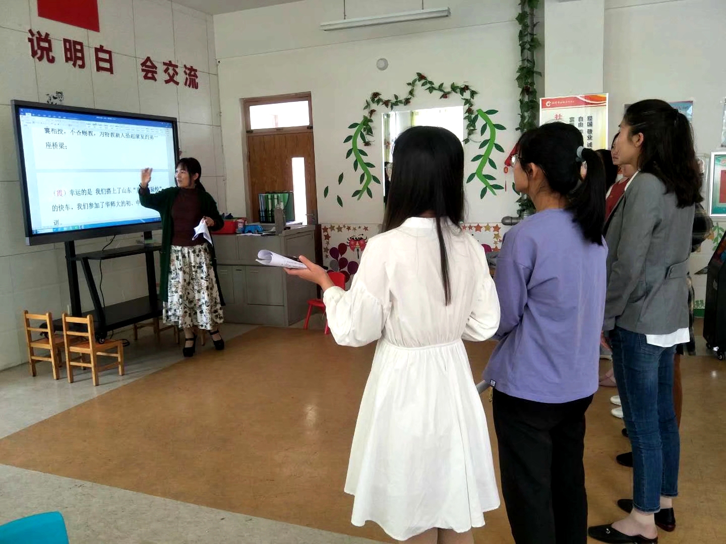 在教學上,蘇老師精心鉆研,精心上好每節(jié)課。孩子們從只會比劃大體意思,到能開口喊出“爸爸、媽媽”,凝聚了她的心血,體現(xiàn)了她特有的“三閱四到”的教學風格。
