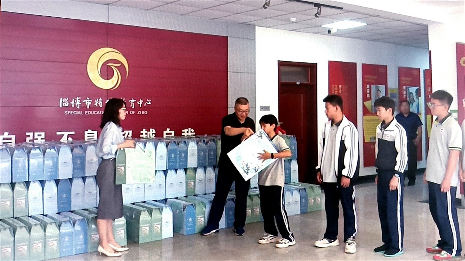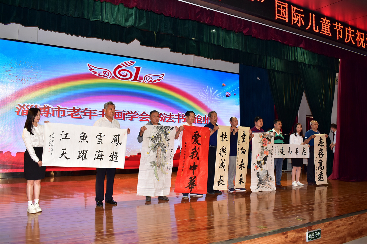 市老年書畫學(xué)會(huì)市直一分會(huì)的老年書畫作家現(xiàn)場為學(xué)生進(jìn)行創(chuàng)作,并為學(xué)校捐贈(zèng)書畫作品40余副。市廣播電視臺(tái)為學(xué)生捐贈(zèng)夏涼被200余套。中國致公黨張店基層委員會(huì)為學(xué)校捐贈(zèng)圖書150余冊(cè),輪滑鞋20雙、外科口罩2000個(gè)。心的光明公益組織捐贈(zèng)文具1000套,文化衫500件。法國西南華人華僑商會(huì)為我校捐贈(zèng)圖書300余冊(cè)……學(xué)校黨委副書記李善軍為愛心企業(yè)頒發(fā)了捐贈(zèng)證書。