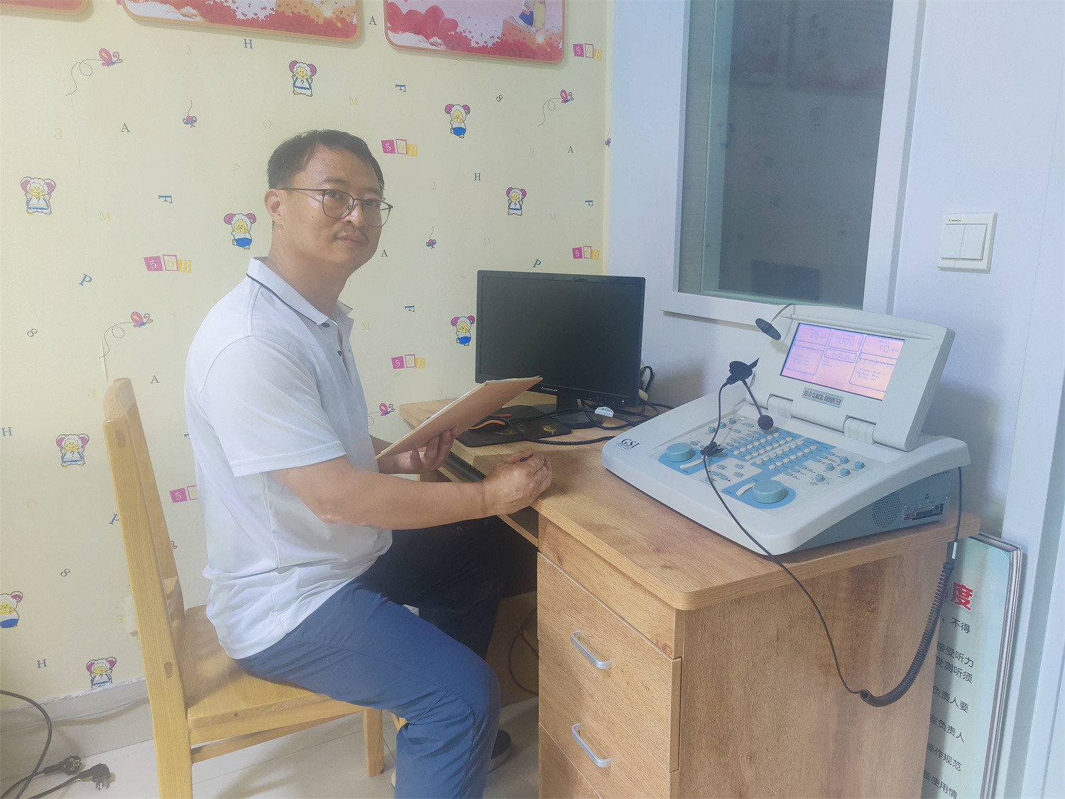 為了給聽障學(xué)生提供更好的聽能條件,維護(hù)聽障學(xué)生的助聽設(shè)備,張老師一遍遍地校對聽力計(jì)和聲場設(shè)備,盡自己最大努力為有需求的聽障學(xué)生檢測聽力,并向班主任或任課教師事無巨細(xì)地反饋學(xué)生的聽力狀況和注意事項(xiàng)。聲場設(shè)備的調(diào)適不是一件容易的事,常常因設(shè)備角度的問題及學(xué)生自身配合度等問題,聽力檢測要耗費(fèi)半天的功夫,但他說:“為了孩子,答應(yīng)的事就要努力做到。”他在學(xué)生心目中樹立了好榜樣,更在老師心目中留下好印象。