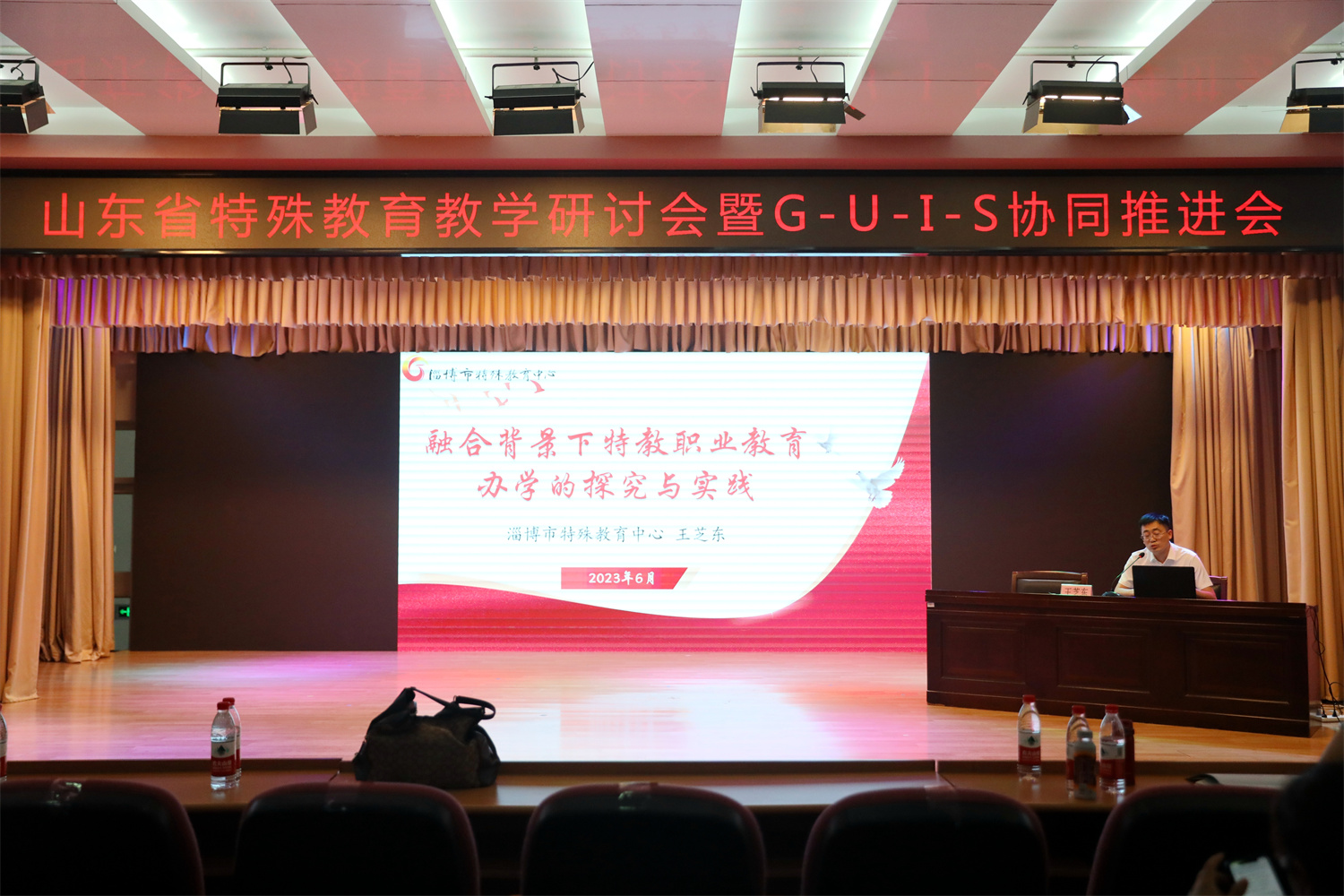 6月29日,山東省特殊教育教學(xué)研討會(huì)暨G-U-I-S協(xié)同推進(jìn)會(huì)在濟(jì)南市特殊教育中心舉行,本次會(huì)議的主題是“推進(jìn)特殊教育多元融合 提高特殊教育教學(xué)水平”,來自全省各地市特殊教育教研員、特殊教育學(xué)校校長(zhǎng)或副校長(zhǎng)、隨班就讀示范學(xué)校校長(zhǎng)或教學(xué)副校長(zhǎng)、有關(guān)高等學(xué)校特殊教育系主任或?qū)I(yè)教學(xué)部負(fù)責(zé)人近300余人參加會(huì)議。