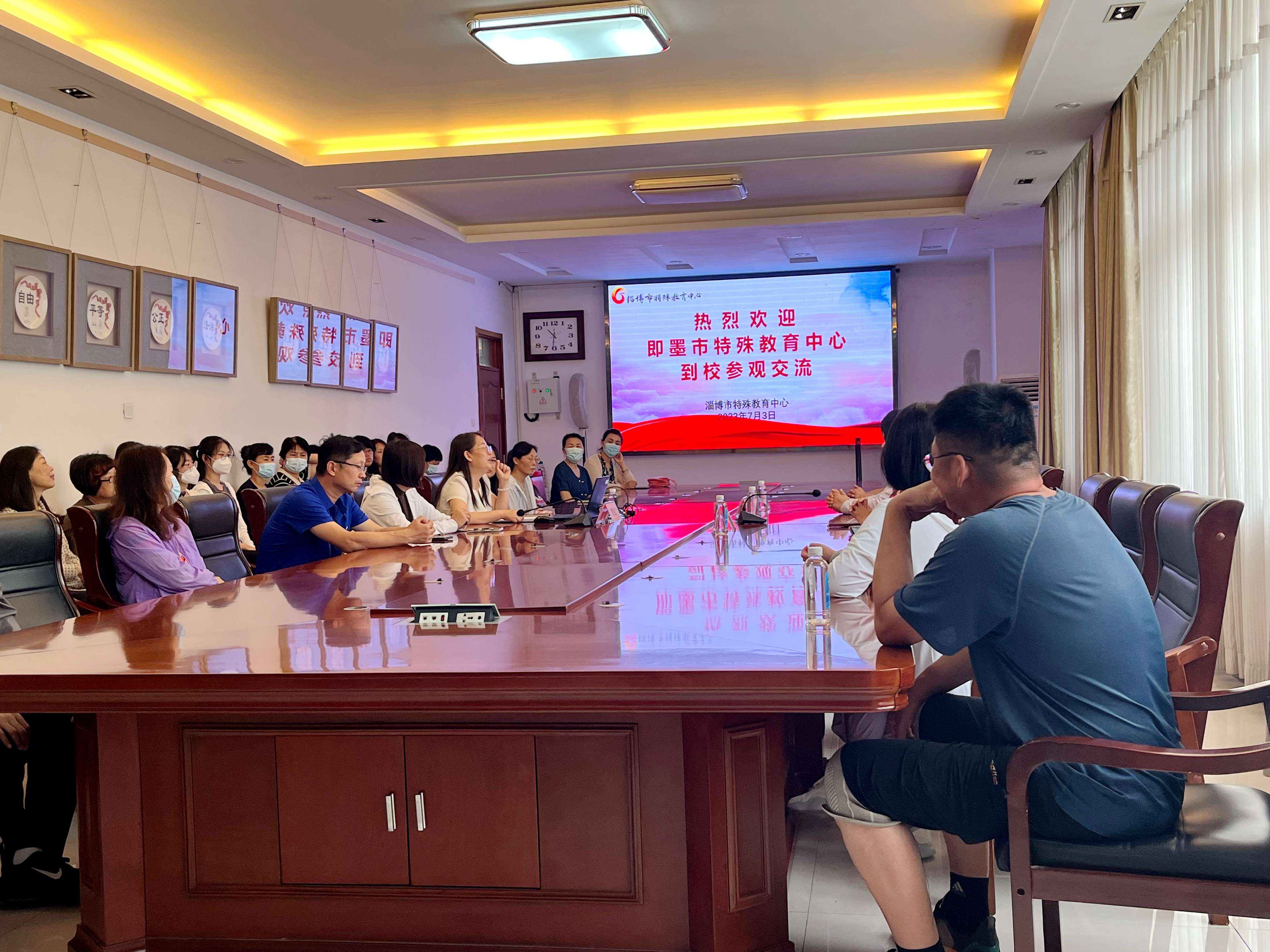 ?為進(jìn)一步加強(qiáng)校際交流,提升學(xué)校辦學(xué)質(zhì)量,加強(qiáng)學(xué)校之間的交流學(xué)習(xí),7月3日,即墨市特殊教育中心副校長(zhǎng)林雪云、胡振興,工會(huì)主席高強(qiáng)一行50余人到我校參觀交流。學(xué)校黨委委員、副校長(zhǎng)賈益芹,相關(guān)處室負(fù)責(zé)人參加座談。