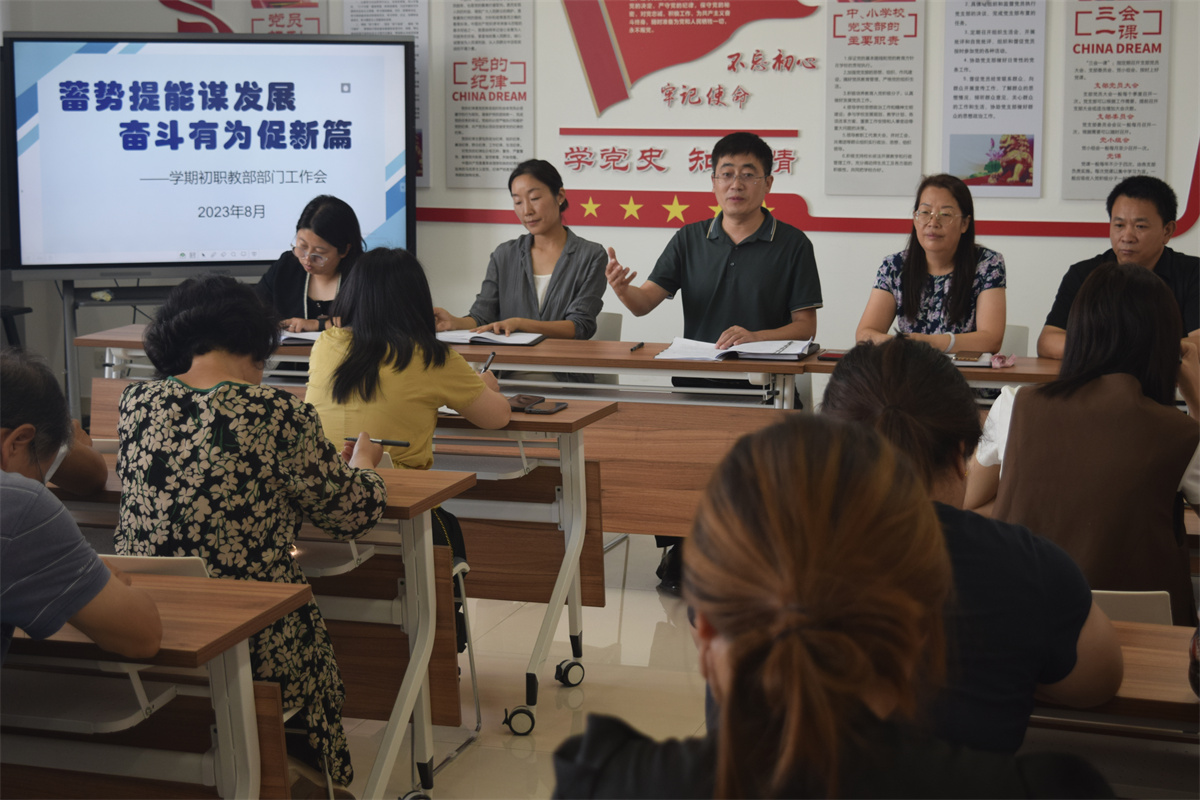 學(xué)校黨委書記、校長王芝東首先肯定了各教學(xué)部前期的工作成績,并要求新學(xué)期每位老師都應(yīng)擺正心態(tài),青年教師努力學(xué)習(xí)打造高效課堂,發(fā)揮專長,積極參與項目研究;老教師積極發(fā)揮傳幫帶作用,青藍(lán)攜手,共促學(xué)校發(fā)展。
