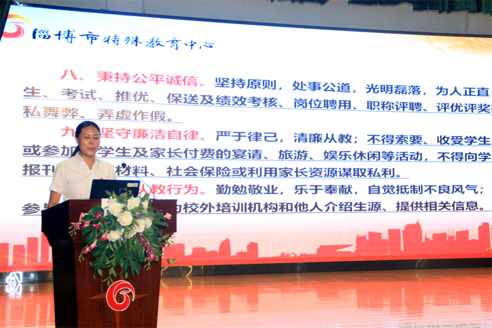 為進(jìn)一步落實(shí)立德樹人根本任務(wù),強(qiáng)化師德師風(fēng)建設(shè),引導(dǎo)全體教職工堅(jiān)守為黨育人、為國(guó)育才的使命擔(dān)當(dāng)。9月上旬,淄博市特教中心舉行師德建設(shè)教育月啟動(dòng)儀式及相關(guān)活動(dòng)。