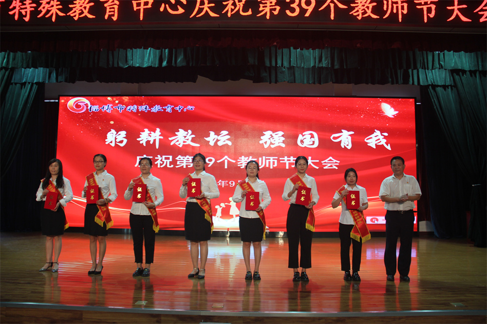 ? 在第39個(gè)教師節(jié)來(lái)臨之際,9月8日下午,淄博市特教中心召開(kāi)慶祝第39個(gè)教師節(jié)大會(huì),全校教職工參會(huì),黨委副書(shū)記李善軍主持會(huì)議。