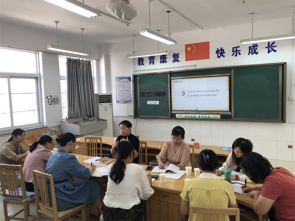 市特教中心王子玉璽和鞏文文兩位老師分別展示了唱游與律動課和生活數(shù)學(xué)課。王老師以《噢!蘇珊娜》為課題,充分遵從“音樂以審美為核心”的理念,以感受和體驗為主,通過師生合作、生生合作,學(xué)會用不同的器具及圖譜感受音樂高低起伏和旋律,讓學(xué)生主動參與到音樂活動中。鞏老師設(shè)計了一節(jié)貼近生活的數(shù)學(xué)課《認(rèn)識0》,在教學(xué)過程中通過拆盲盒游戲激趣導(dǎo)入,創(chuàng)設(shè)三個場景,用不同深度的問題循序漸進(jìn)引導(dǎo)學(xué)生了解0的含義,通過找生活中的數(shù)字0,理論聯(lián)系實際,讓學(xué)生體驗數(shù)學(xué)與生活的密切聯(lián)系,充分體現(xiàn)了數(shù)學(xué)為生活服務(wù)的教學(xué)原則。