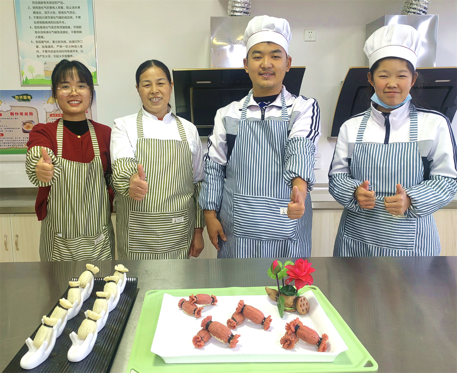 淄博市特教中心職業(yè)教師隊伍建設(shè)實行“請進來”和“走出去”相結(jié)合的方式,聘請職業(yè)院校專家教授為學(xué)??妥淌冢_展普通職業(yè)學(xué)校專業(yè)教師和學(xué)校教師協(xié)同教學(xué);邀請面點大師、花饃老師等走進學(xué)校,開展師資培訓(xùn),提升教師專業(yè)技能;鼓勵教師利用業(yè)余時間參加校外培訓(xùn),考取資格證書;校企聯(lián)合,與紅寶石蛋糕等企業(yè)合作,聯(lián)合舉辦教師培訓(xùn),共享資源等。在學(xué)校的大力支持下,教師們不斷暢通多種發(fā)展路徑,汽車美容、工藝美術(shù)、中式面點、烘焙、美甲等專業(yè)課程已經(jīng)初見成效,實現(xiàn)持續(xù)發(fā)展。