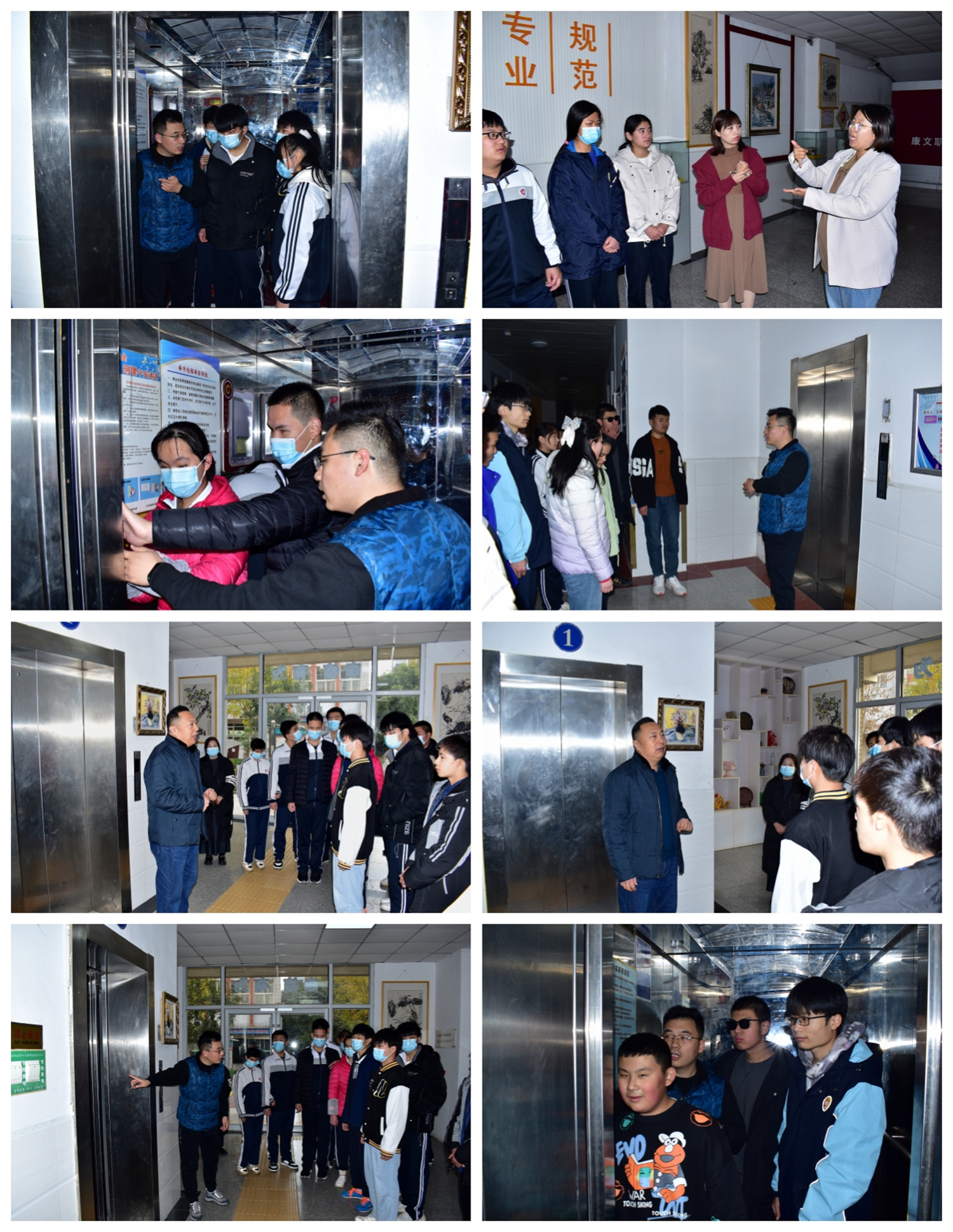 學校召集部分師生先后在2號樓和9號樓電梯廳處進行了講解和操作。首先,學校副校長王洪杰同志向同學們講解了電梯安全的重要性,并介紹了相應的注意事項和簡單的應急事故處理方法。接下來,學校特種設備管理員向大家講解了緊急停電、電梯故障及電梯墜落等不同情況下的電梯應急處置方法,并從學校、居家和外出等不同情況出發(fā),為大家介紹了乘坐電梯的注意事項,以及緊急情況下例如火災、地震不能乘坐電梯逃生時,如何利用消防通道緊急逃生的方法。最后,在老師的指導下,同學們分組進入電梯,進行電梯應急演練,模擬緊急情況發(fā)生時,如何快速準確的采用正確的應對處置方法。