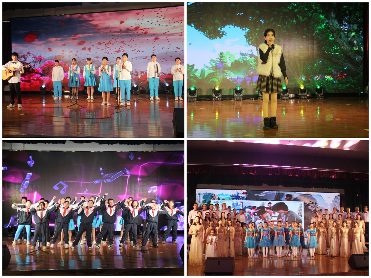 第三篇章“乘風(fēng)浩蕩啟新程”。器樂串燒《森林狂想曲》等展示了學(xué)生樂器表演風(fēng)采;隨班就讀學(xué)生周俊篪的獨(dú)唱《苔》,用音樂演繹生命的頑強(qiáng)不屈、自強(qiáng)的成長信念;體現(xiàn)普特融合的小合唱《一起向未來》、師生合唱《最好的未來》,用心懷感恩、幸福和憧憬的歌聲,為學(xué)校的美好明天送上祝福。