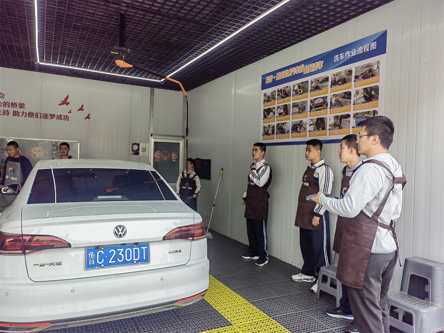 2024年3月,啟音·柏舟愛心洗車房負責人及老師應邀到學校參觀,了解學校中職學生培養(yǎng)情況,進行校企洽談,確定學生實習時間、實習崗位及相關實習內(nèi)容。