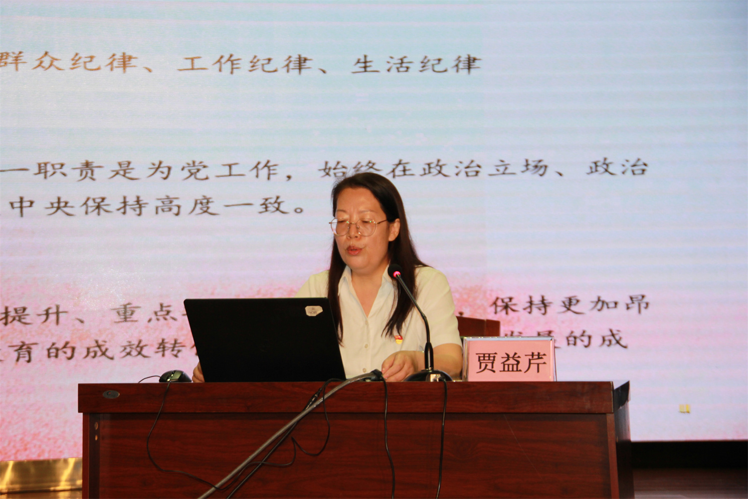 黨委副書記、校長賈益芹以“知敬畏 存戒懼 守底線”為題,講述如何做特殊教育高質(zhì)量發(fā)展的推動者,為全體黨員上了一堂專業(yè)、精彩的專題黨課。