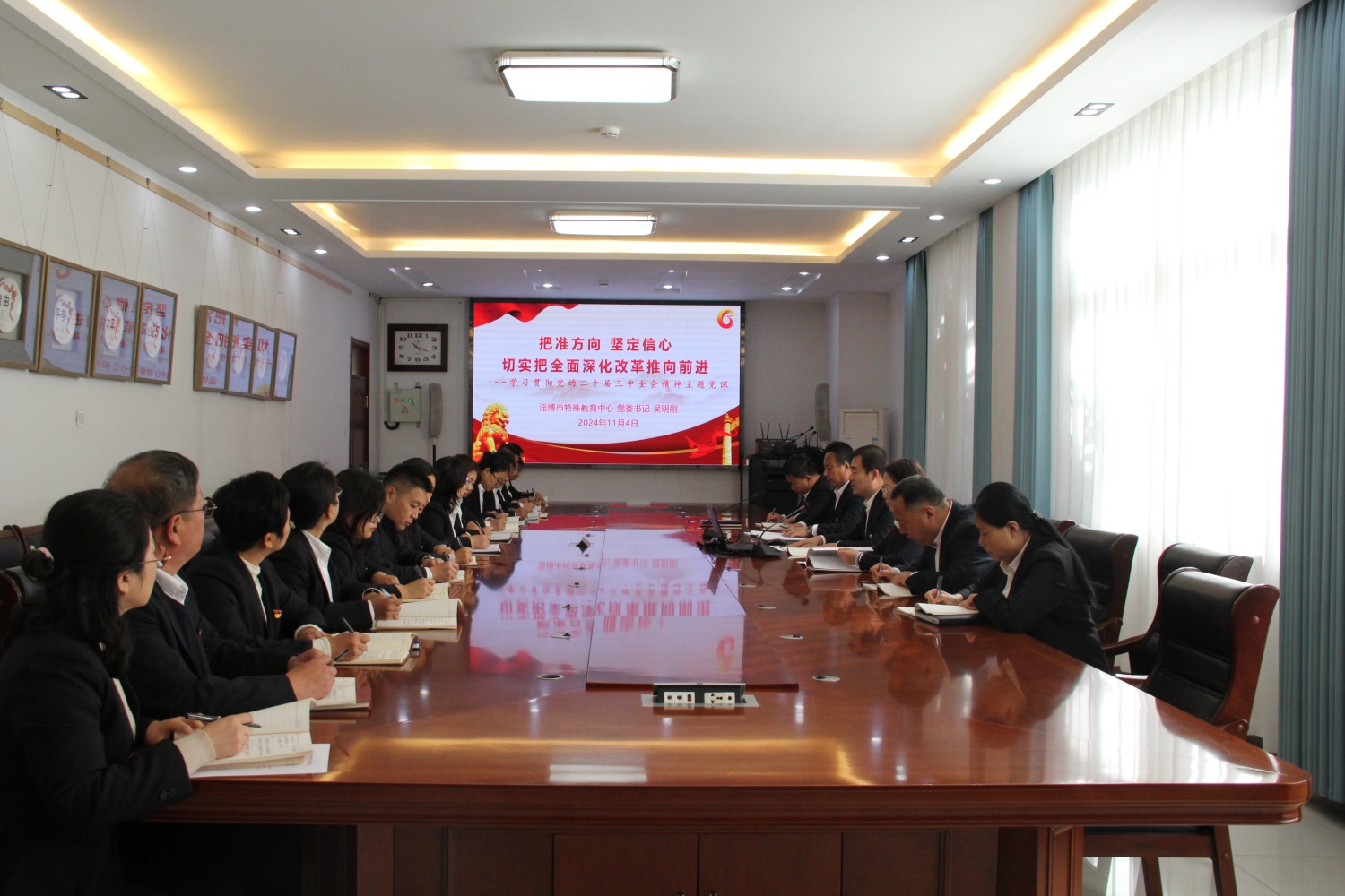 ?為全面學(xué)習(xí)貫徹黨的二十屆三中全會(huì)精神,加強(qiáng)干部隊(duì)伍建設(shè),11月4日,淄博市特教中心舉辦黨的二十屆三中全會(huì)精神學(xué)習(xí)教育培訓(xùn)班,學(xué)校領(lǐng)導(dǎo)班子成員、各黨支部書記和支委成員參加培訓(xùn)。