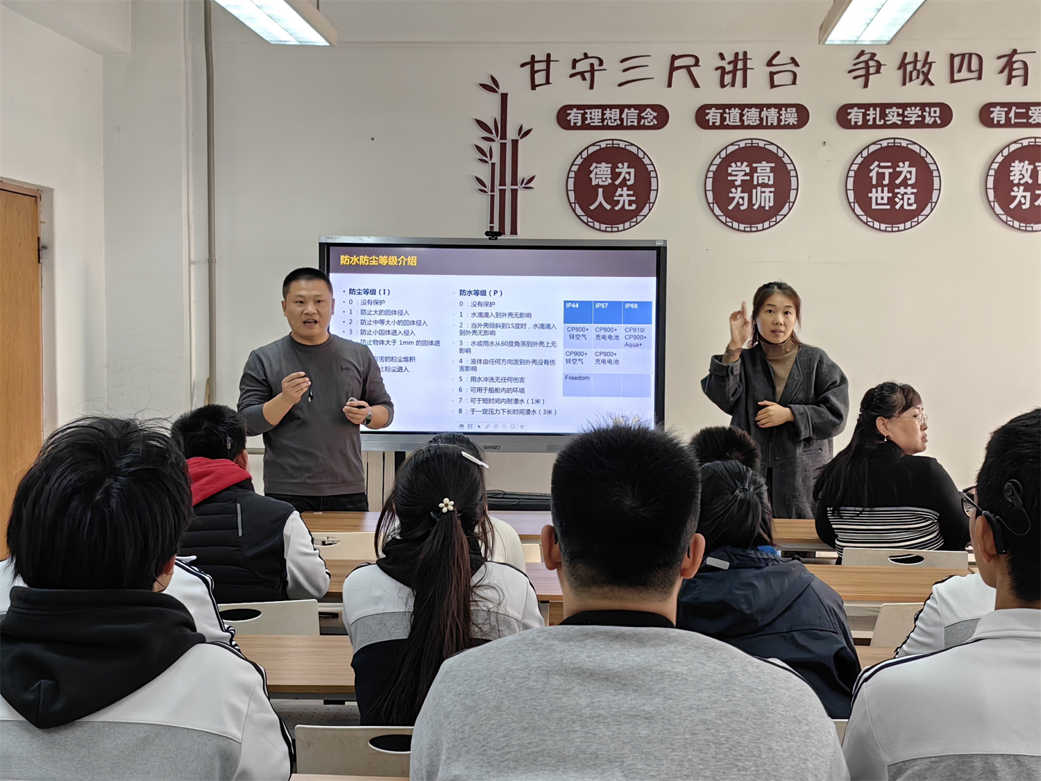 活動現(xiàn)場,澳科利耳山東地區(qū)于立超經(jīng)理向學生介紹了人工耳蝸的基本結構和工作原理,強調了防水、防塵等使用注意事項,詳細介紹了人工耳蝸的維護保養(yǎng)工具和方法,并使用真機進行了現(xiàn)場演示。隨后,學生上臺親自動手操作,學習了人工耳蝸的日常清潔步驟。講座結束后,工作人員為學生進行了一對一的人工耳蝸的保養(yǎng)與調試,并針對每位學生的聽力狀況和使用情況給予了專業(yè)的建議。
