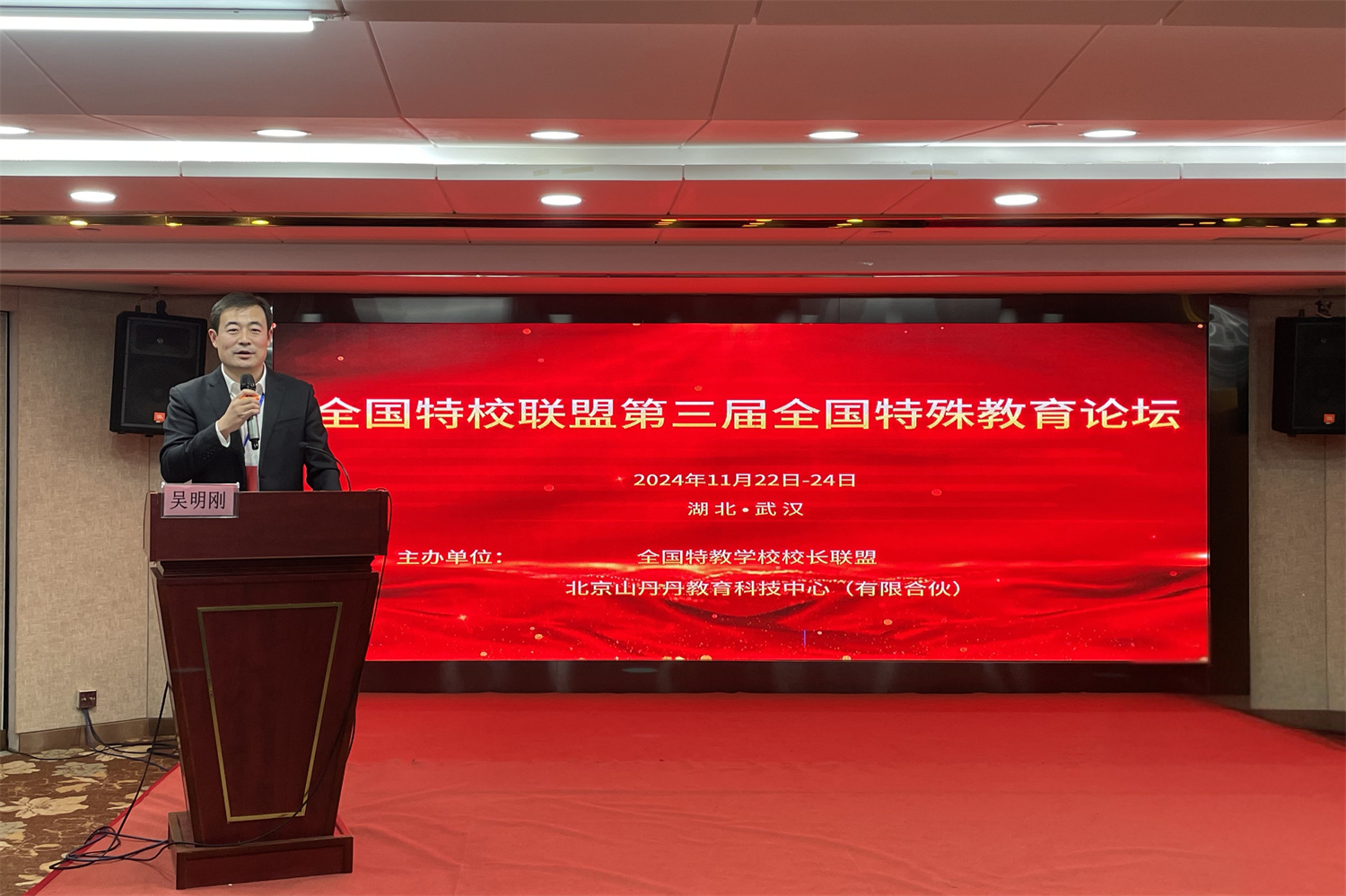 ?2024年11月23至24日,全國特殊教育學(xué)校聯(lián)盟第三屆特殊教育論壇在湖北武漢順利召開。來自全國教育、民政、殘聯(lián)系統(tǒng)及民辦機(jī)構(gòu)的特教教師、殘疾人服務(wù)人員和科研人員共130余人參加會(huì)議。聯(lián)盟理事長、淄博市特殊教育中心黨委書記吳明剛主持會(huì)議,副書記李善軍做典型發(fā)言。