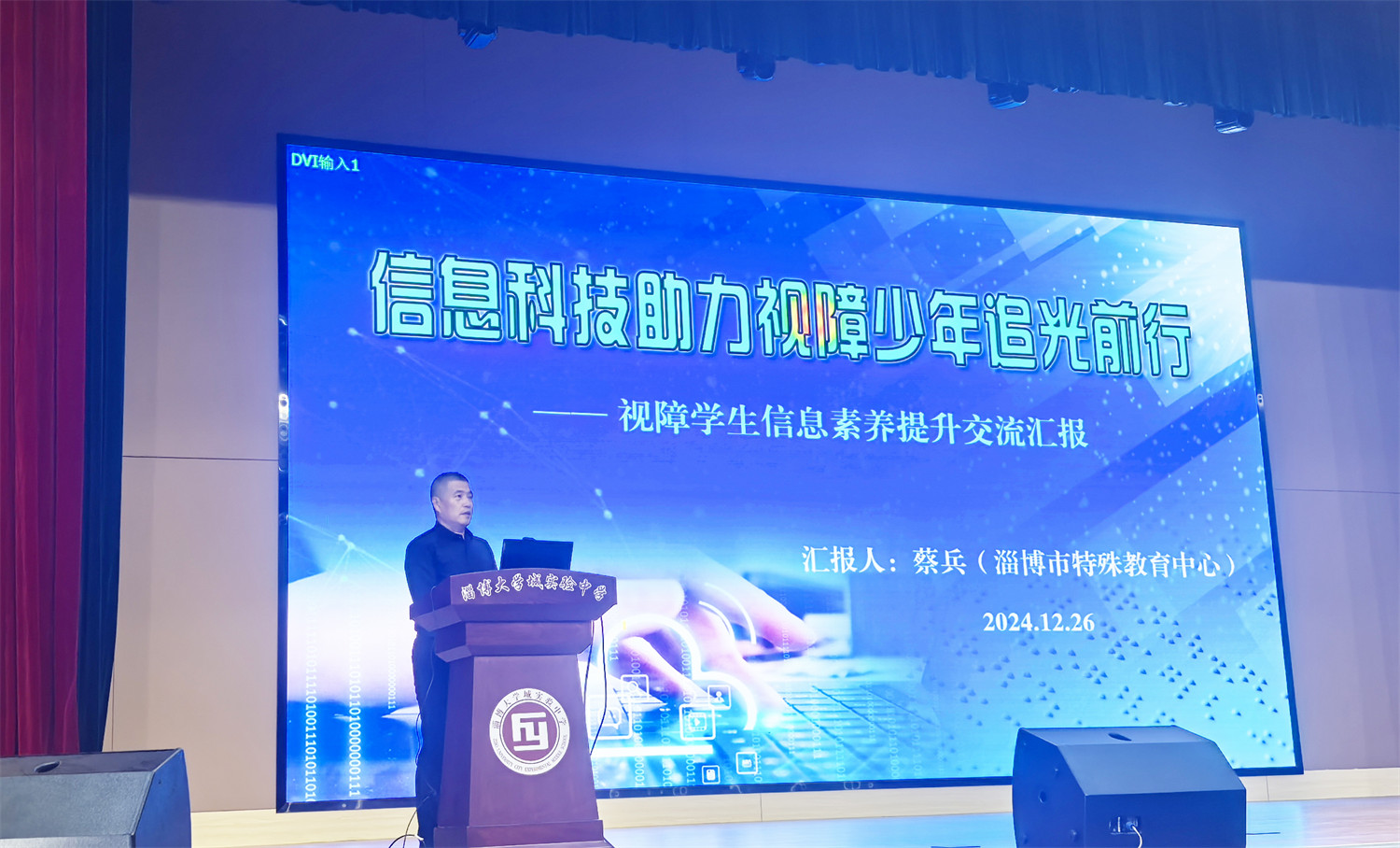 ?近日,全市學(xué)生信息素養(yǎng)提升交流研討活動在淄博大學(xué)城實驗中學(xué)舉行,淄博市特教中心蔡兵老師受邀以《信息科技助力視障少年追光前行》為題作交流發(fā)言。