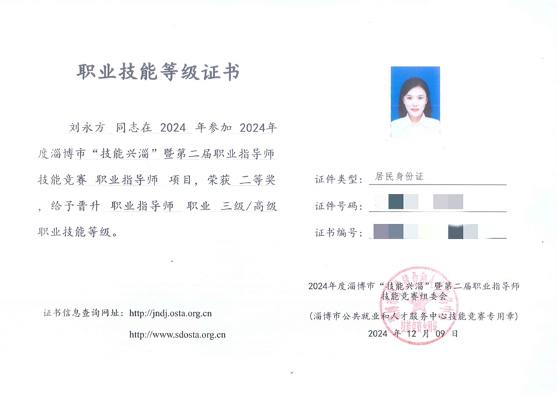 近日,淄博特教中心劉永方老師順利拿到職業(yè)指導師三級/高級職業(yè)技能等級證書。