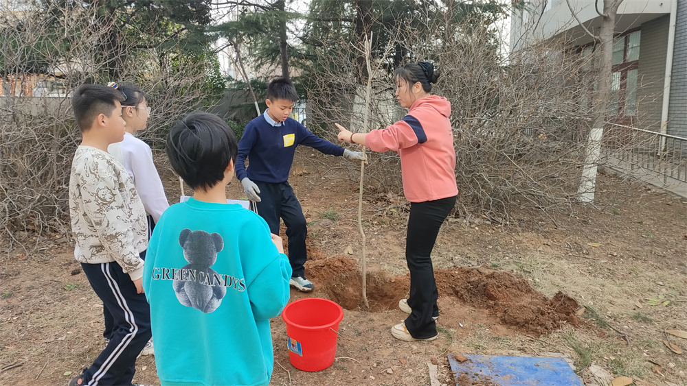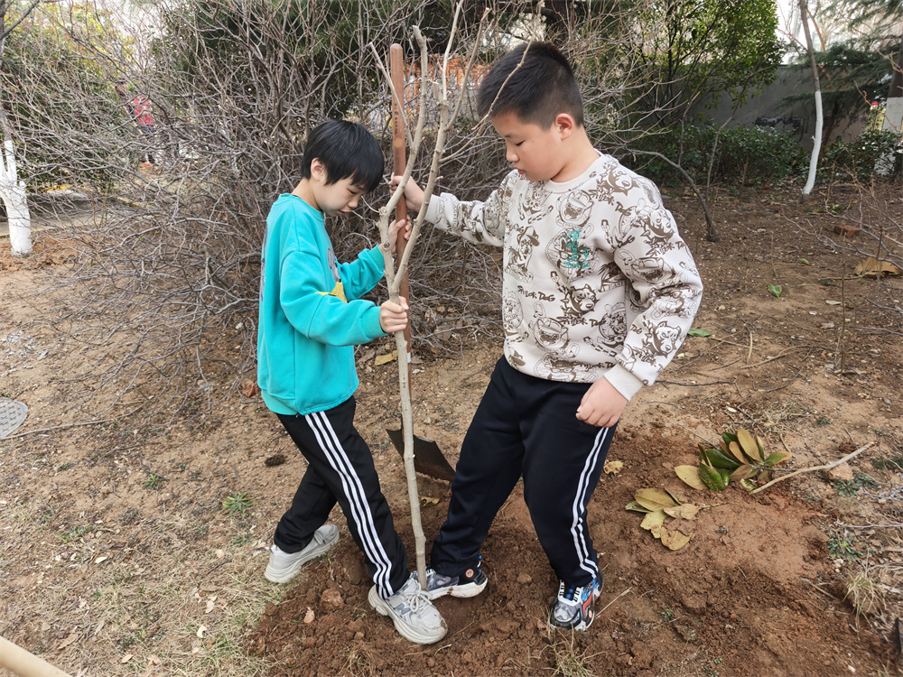 學(xué)生們在學(xué)校精心組織下,來到校園的空地上,開啟了一場別開生面的植樹活動(dòng)。在老師們的引導(dǎo)下,孩子們迅速投入到植樹的各個(gè)環(huán)節(jié):有的手握鐵鍬,小心翼翼地挖出一個(gè)個(gè)樹坑;有的兩人一組,合力將樹苗輕輕放入坑中;還有的小心翼翼地為小樹培土、澆水……用行動(dòng)傳遞著對(duì)生命的熱愛和對(duì)未來的希望。