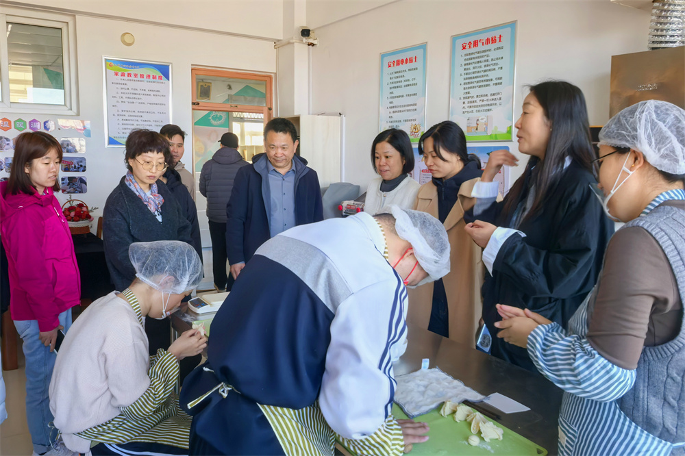 賈益芹致歡迎詞,對天津特教同仁的到來表示熱烈歡迎,大家共同觀看了學(xué)校宣傳片。杜建博詳細(xì)介紹了學(xué)校概況、辦學(xué)歷程、課程體系和學(xué)生發(fā)展等內(nèi)容。職教部負(fù)責(zé)人從課程建設(shè)、專業(yè)設(shè)置、師資培養(yǎng)等方面進(jìn)行了匯報。參觀團(tuán)隊對學(xué)校“學(xué)業(yè)+就業(yè)”雙業(yè)一體化職業(yè)教育辦學(xué)體系給予高度評價,雙方就課程開發(fā)、實習(xí)基地建設(shè)及師資培養(yǎng)等方面展開了深入交流探討。