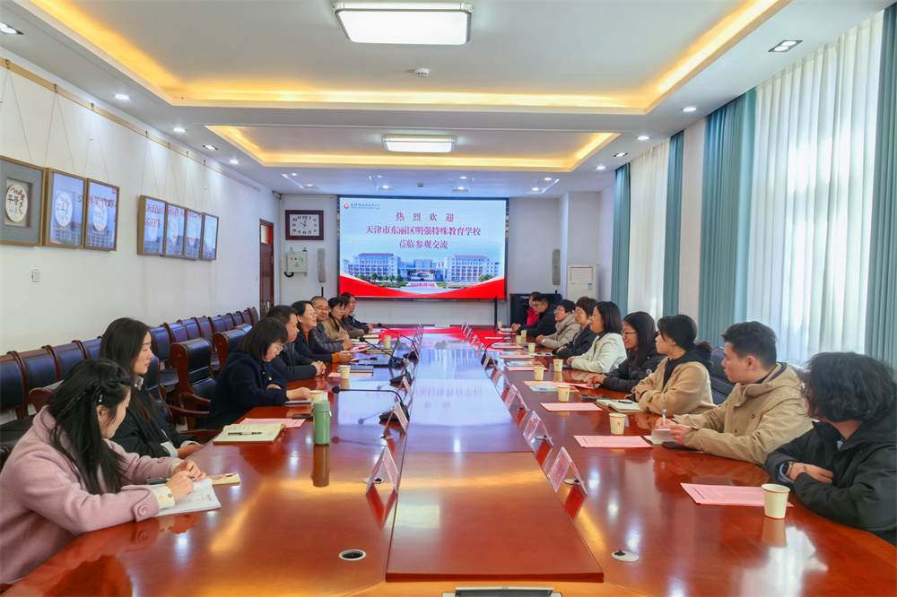 ?為加強(qiáng)校際交流,共享優(yōu)質(zhì)教育資源,共同探索職業(yè)教育高質(zhì)量發(fā)展新路徑,3月18日,天津市東麗區(qū)明強(qiáng)特殊教育學(xué)校張會娜主任一行12人到淄博市特教中心參觀交流。學(xué)校黨委副書記、校長賈益芹,副校長杜建博,相關(guān)處室負(fù)責(zé)人參加活動。