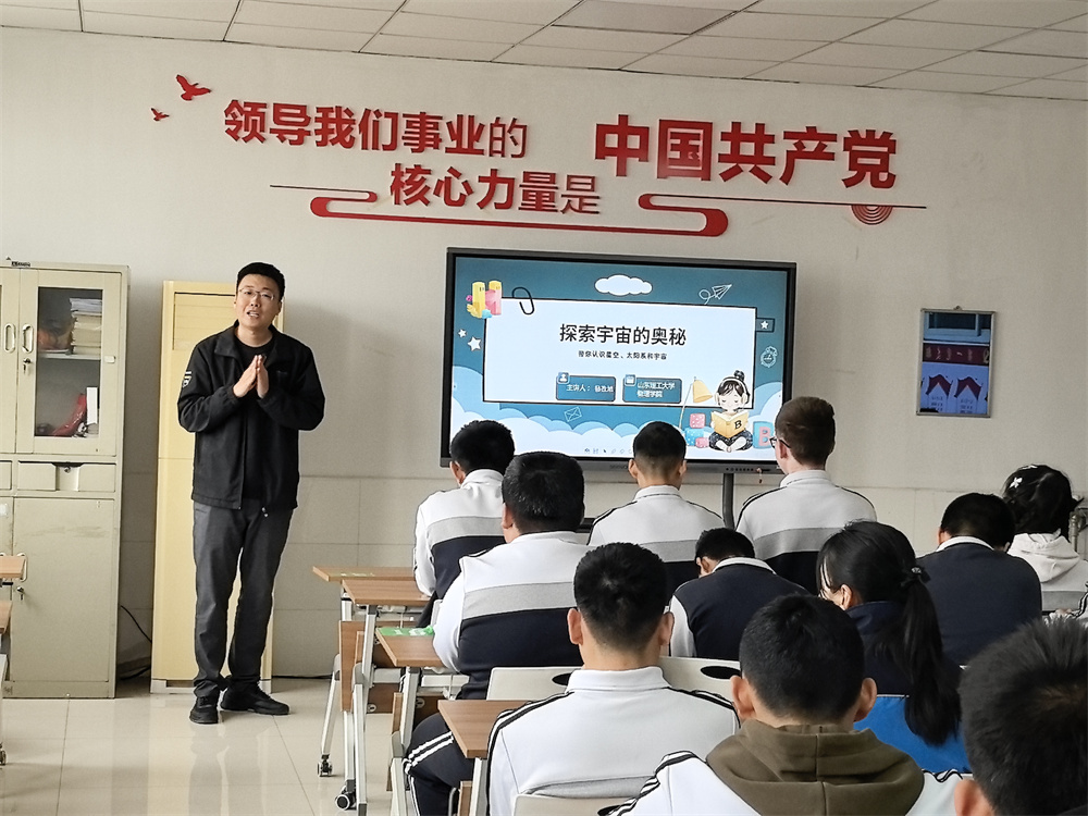 簽約儀式結(jié)束后,雙方代表進(jìn)行了親切友好的交流,并參觀了特教學(xué)校的教學(xué)設(shè)施和校園環(huán)境。隨后,與會(huì)人員與學(xué)校物理老師進(jìn)行了座談交流,學(xué)院老師們走進(jìn)課堂,與孩子們互動(dòng)交流,為孩子們上了一堂精彩的《探索宇宙的奧秘》科普講座。雙方代表赴黑鐵山抗日武裝起義紀(jì)念館,共同開(kāi)展黨建主題實(shí)踐活動(dòng)。