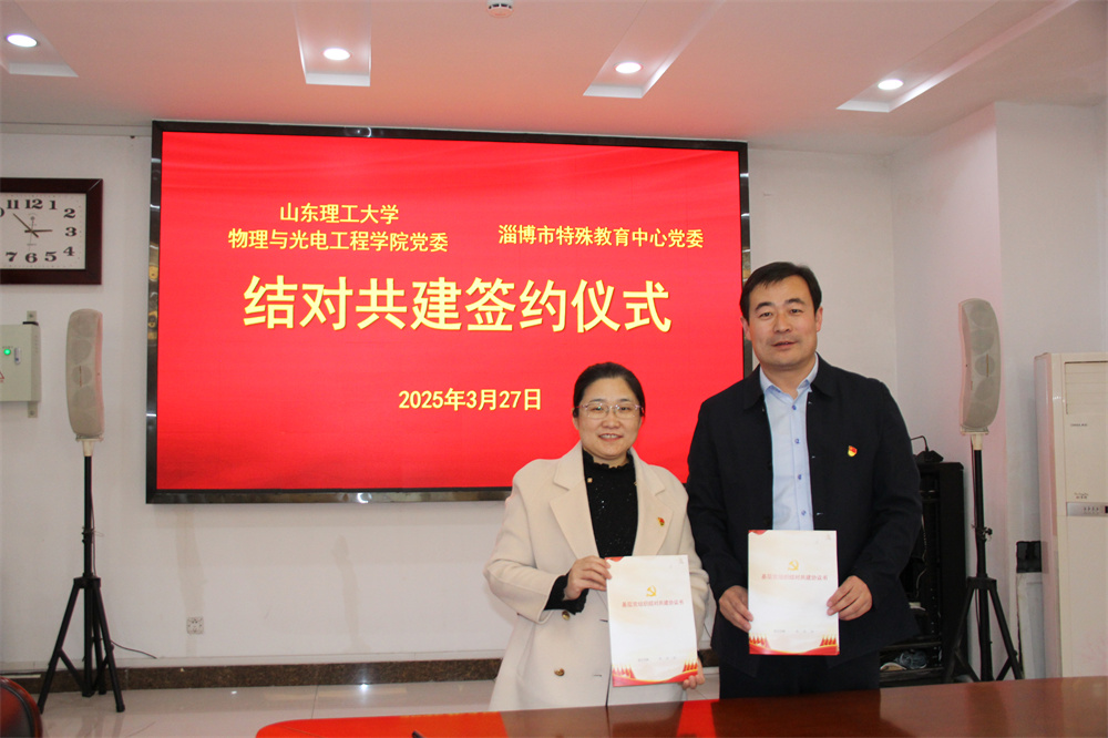 ?3月27日,淄博市特教中心與山東理工大學(xué)物理與光電工程學(xué)院開(kāi)展黨組織結(jié)對(duì)共建活動(dòng),這標(biāo)志著學(xué)校與高校黨建深度合作工作正式拉開(kāi)序幕。學(xué)校黨委書(shū)記吳明剛主持會(huì)議,物理與光電工程學(xué)院領(lǐng)導(dǎo)、教師及學(xué)校領(lǐng)導(dǎo)、部分處室負(fù)責(zé)人參加活動(dòng)。