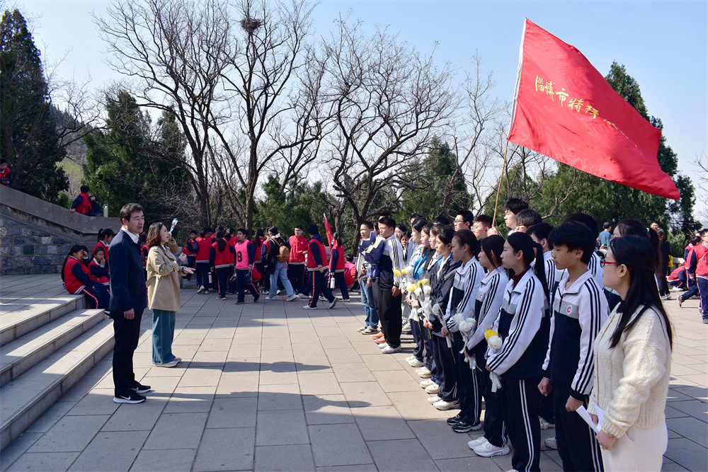 在敬獻(xiàn)花束環(huán)節(jié),全體師生手持鮮花,緩緩走向烈士墓前,將鮮花輕輕擺放,以實(shí)際行動(dòng)表達(dá)對(duì)先烈的緬懷與感恩。