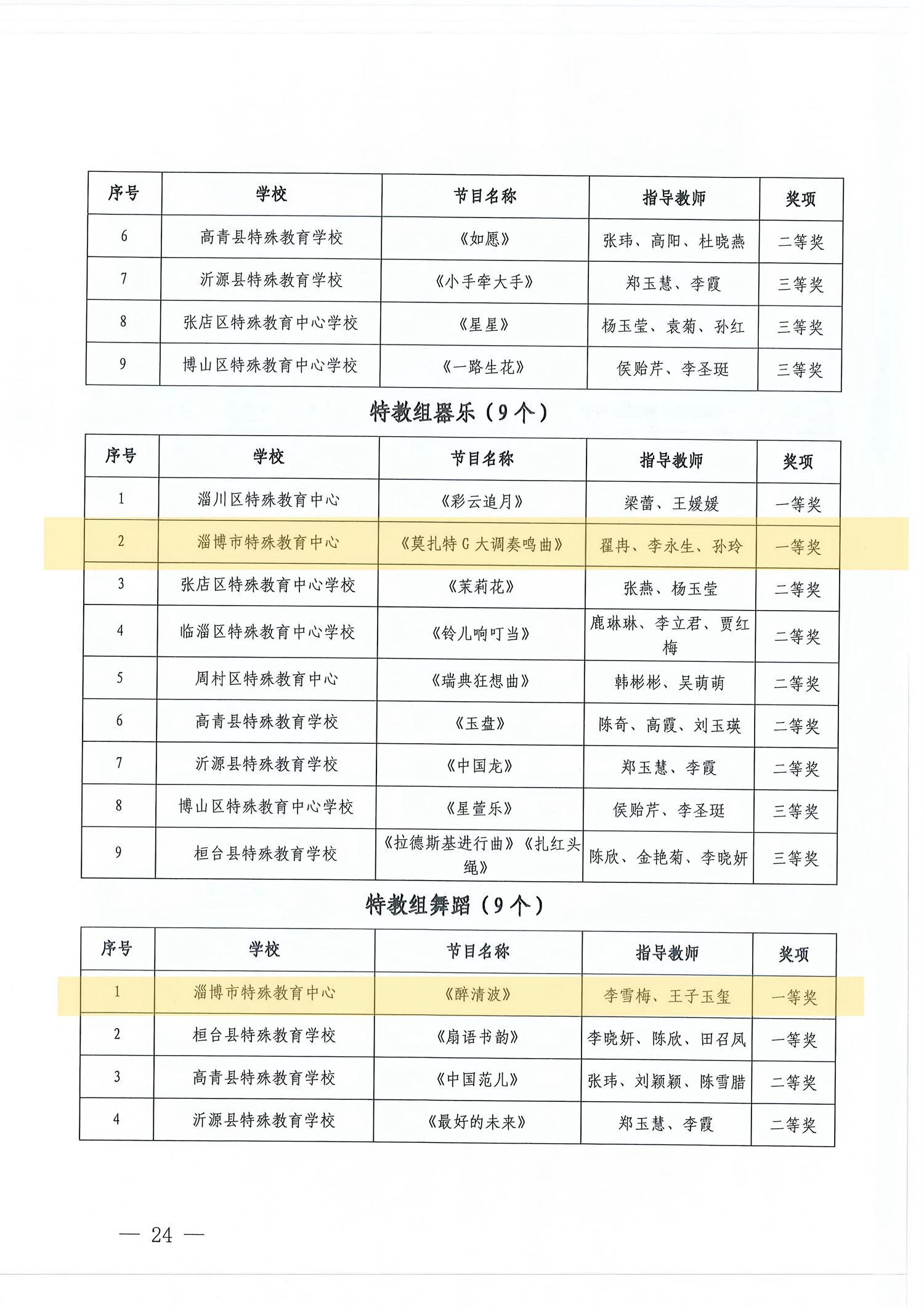 淄博市中小學生“百靈”藝術(shù)節(jié)活動每年舉辦一屆,是全市規(guī)格最高、規(guī)模最大、影響最廣的學生美育成果展示平臺。本屆活動首次專設特教組并以現(xiàn)場展演展示的形式進行了評選。學校精心選送的藝術(shù)展演類《在燦爛的陽光下》《莫扎特G大調(diào)奏鳴曲》《醉清波》3個節(jié)目、藝術(shù)作品類《盛齊文化 百鳥爭鳴》《杜牧詩<秋夕><山行>》2件作品在評選中脫穎而出,全部榮獲一等獎。創(chuàng)造了歷屆活動以來的最好成績,為學?!耙悦烙恕惫ぷ骼L就了濃墨重彩的一筆。