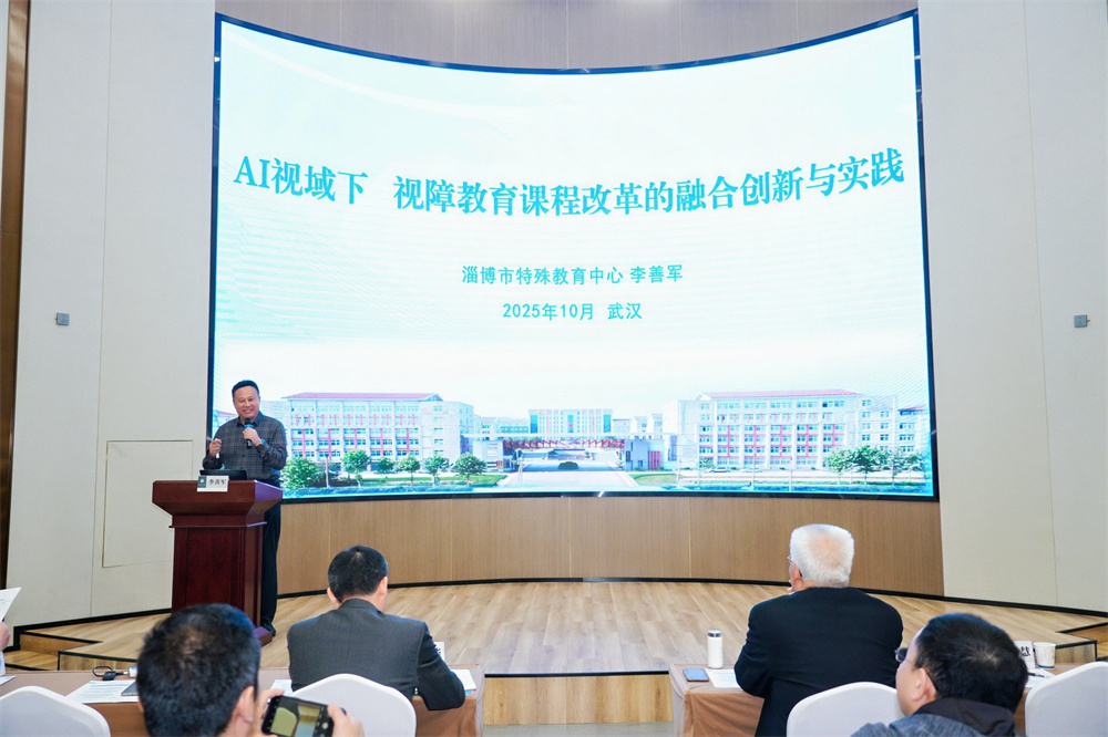 ?10月27日至29日,國(guó)家特殊教育教材建設(shè)工作推進(jìn)會(huì)暨數(shù)智時(shí)代盲校課程教材建設(shè)研討會(huì)在華中師范大學(xué)召開。本次會(huì)議匯聚了特殊教育政策研究者、專家教授、國(guó)家教材重點(diǎn)研究基地工作者以及視障教育一線教育工作者代表等。會(huì)議旨在貫徹落實(shí)國(guó)家關(guān)于教材建設(shè)的最新精神,聚焦于數(shù)智時(shí)代背景下盲校課程教材的前沿研究和實(shí)踐經(jīng)驗(yàn)。鑒于淄博特教中心幾十年的實(shí)踐探索,我校李善軍副書記受邀參會(huì),并作專題報(bào)告。