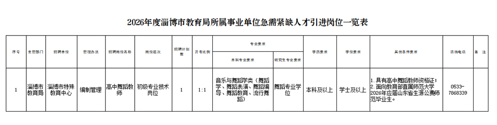 具體招聘條件及其它相關(guān)要求詳見《2026年度淄博市教育局所屬事業(yè)單位急需緊缺人才引進公告》。